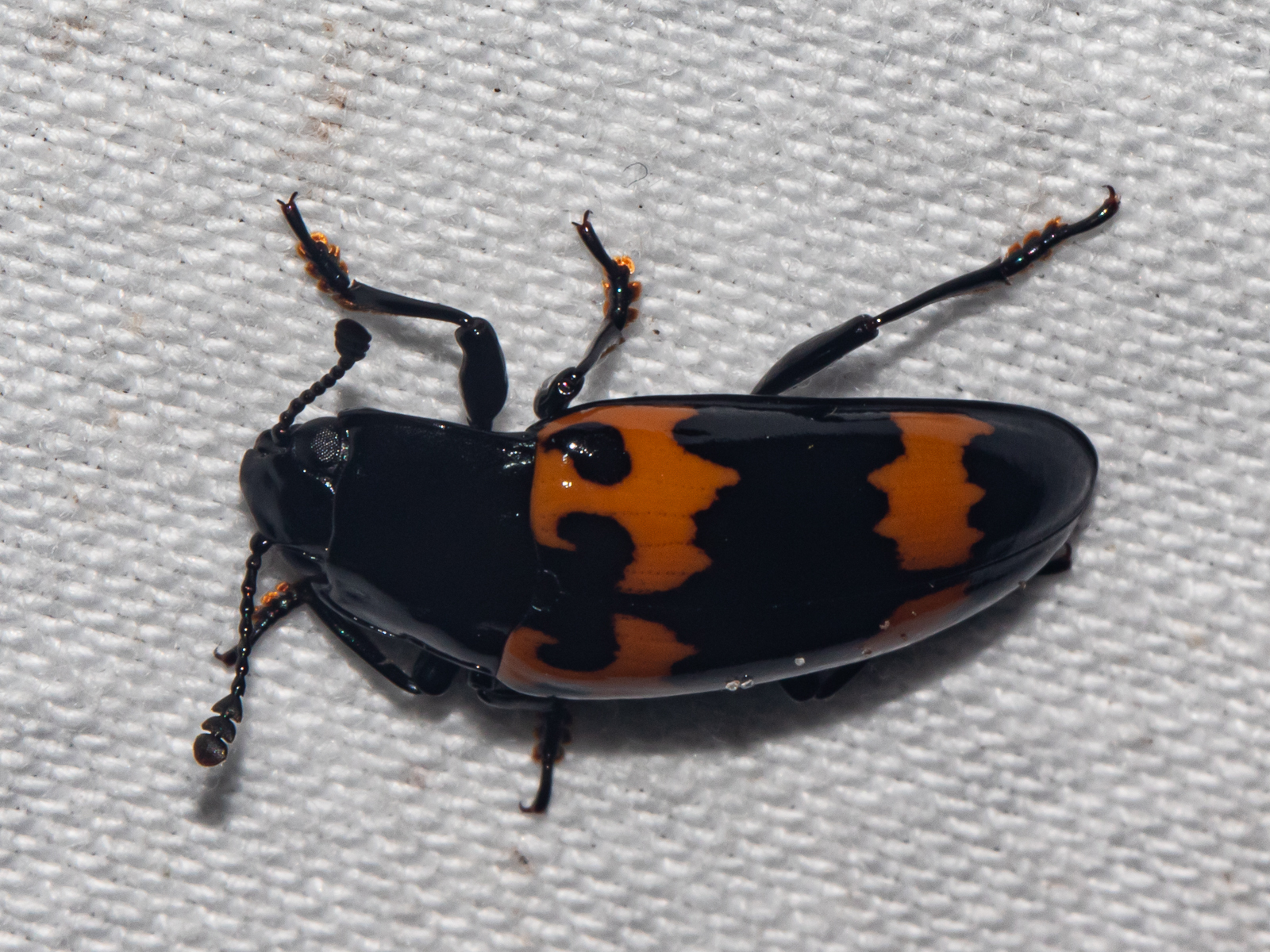 Megalodacne heros, a Pleasing Fungus Beetle, in Garrett Co., Maryland (6/9/2013). This species lacks the rows of fine punctures in the elytra found in M. fasciata.