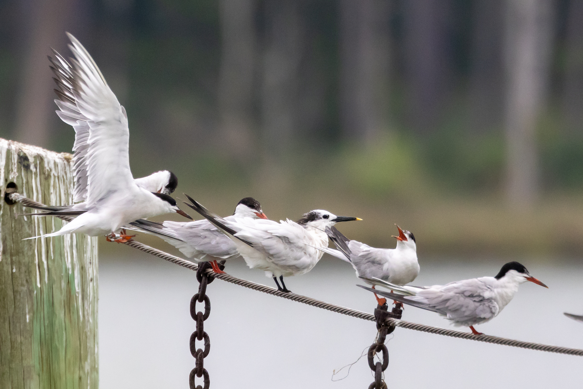 Sandwich tern (left) with a common tern (centre) and a roseate tern (right)