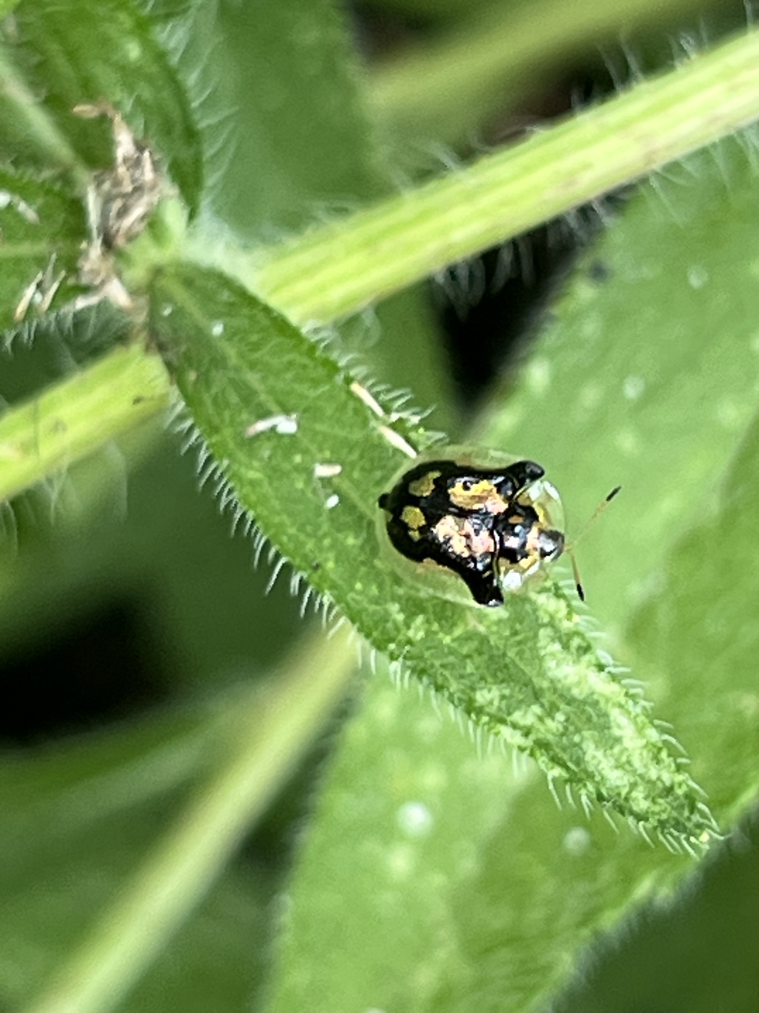A Mottled Tortoise Beetle in Howard Co., Maryland (6/22/2019).
