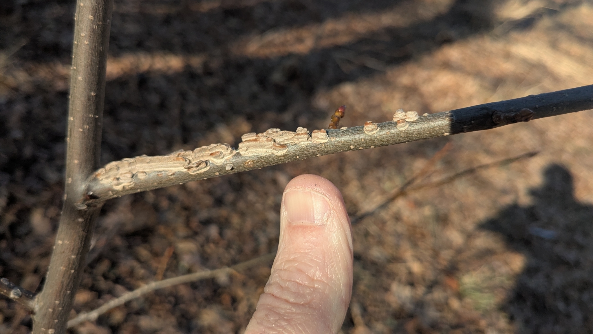 Small branches with edgewise plates of bark