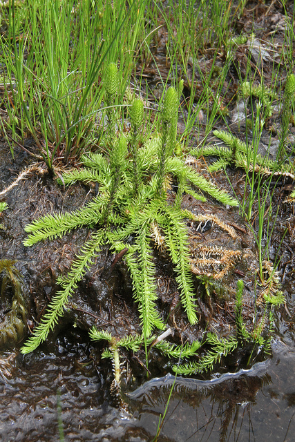 Lycopodiella inundata is a species of club moss known by the common names inundated club moss,[2] marsh clubmoss[3] and northern bog club moss. It has a circumpolar and circumboreal distribution, occurring throughout the northern Northern Hemisphere from the Arctic to montane temperate regions in Eurasia and North America. It grows in wet habitat, such as bogs, ponds, moist spots on the tundra, and long-standing borrow pits.
