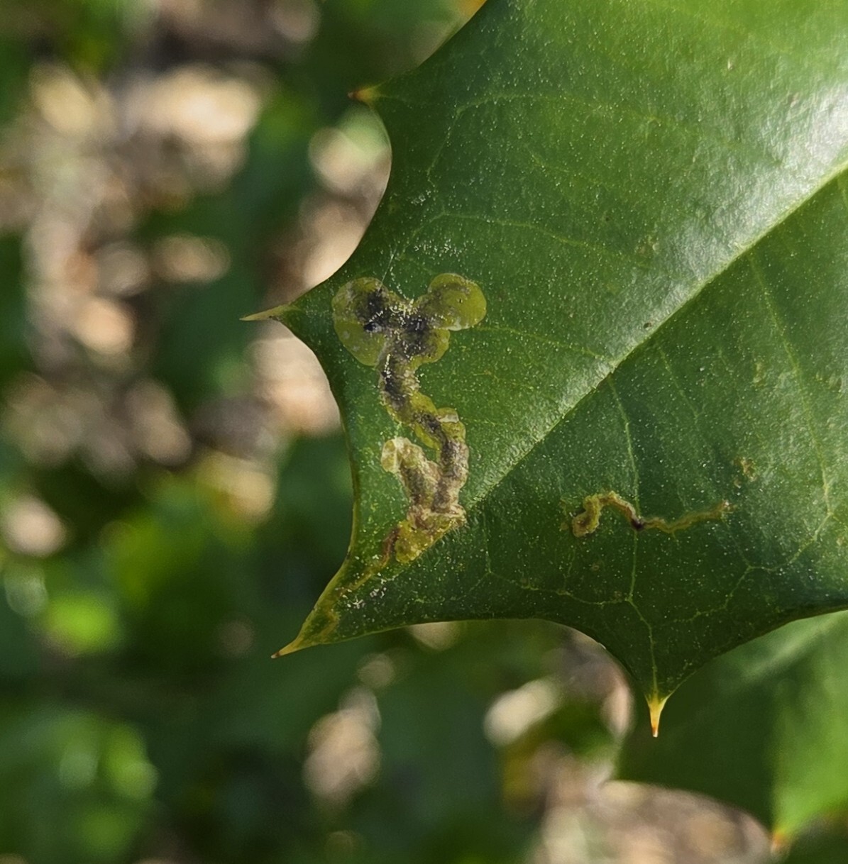 Native Holly Leafminer on American Holly in St. Mary's Co., Maryland (11/18/2017). Verified by Charley Eiseman/BugGuide.