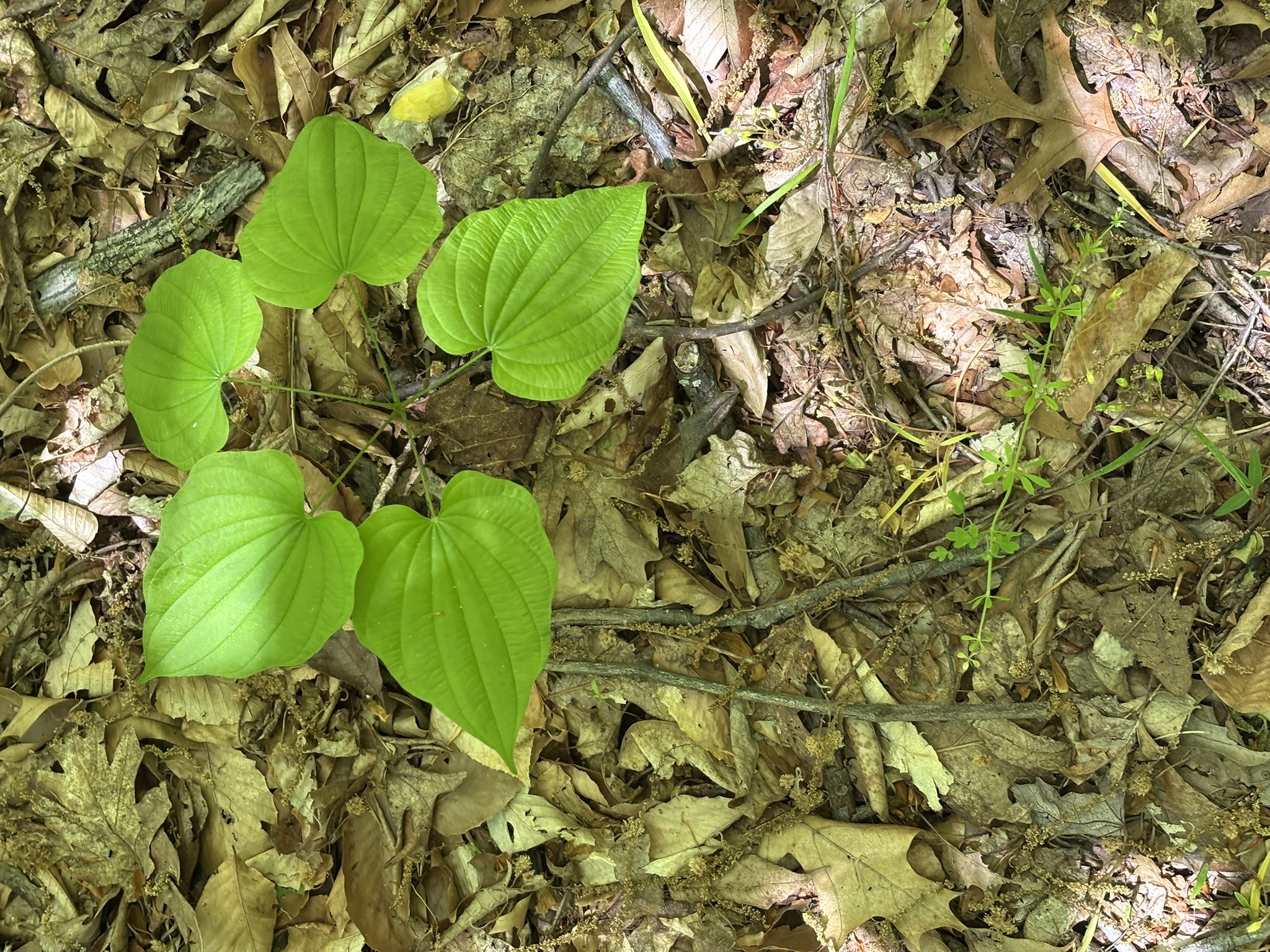 Dioscorea villosa is a species of twining tuberous vine which is native to eastern North America. It is commonly known as wild yam, colic root, rheumatism root, devil's bones, and fourleaf yam.[4] It is common and widespread in a range stretching from Texas and Florida north to Minnesota, Ontario and Massachusetts.[3][5][6][7][8]