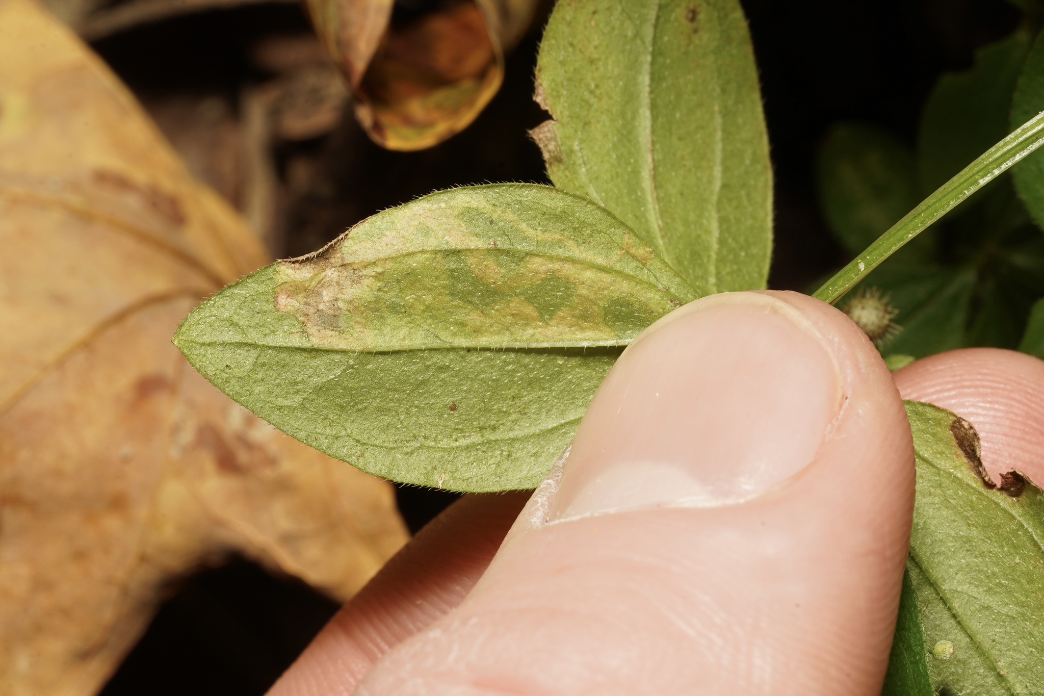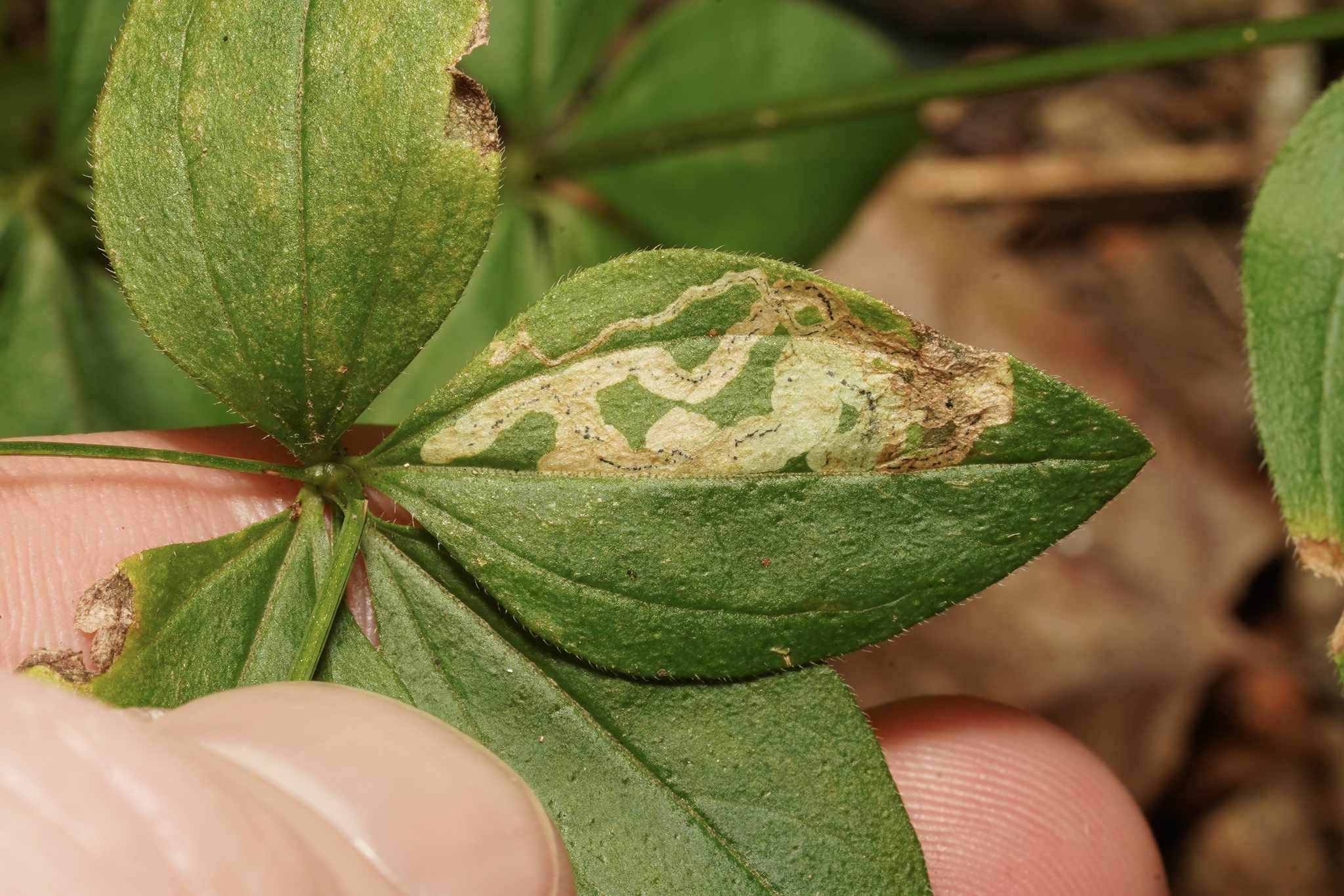 Liriomyza galiivora leaf mines on Galium sp. in Harford Co., Maryland (9/18/2017). Determined by Charley Eiseman/BugGuide.