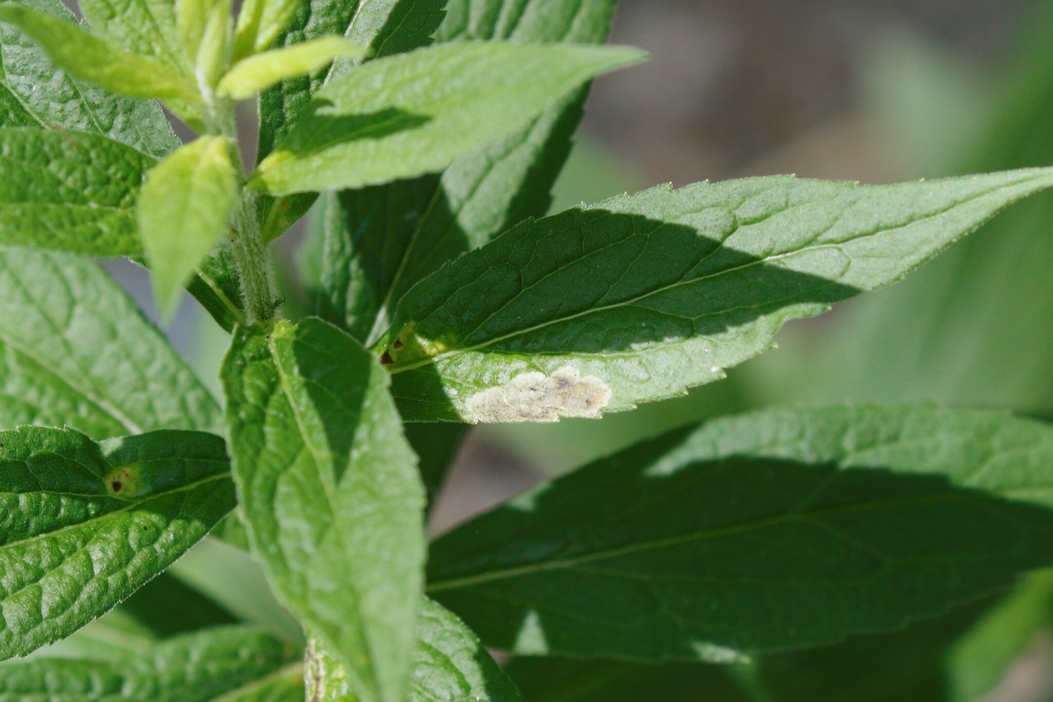A Calycomyza solidaginis leaf mine in Harford Co., Maryland (5/17/2018). Determined by Charley Eiseman/BugGuide.