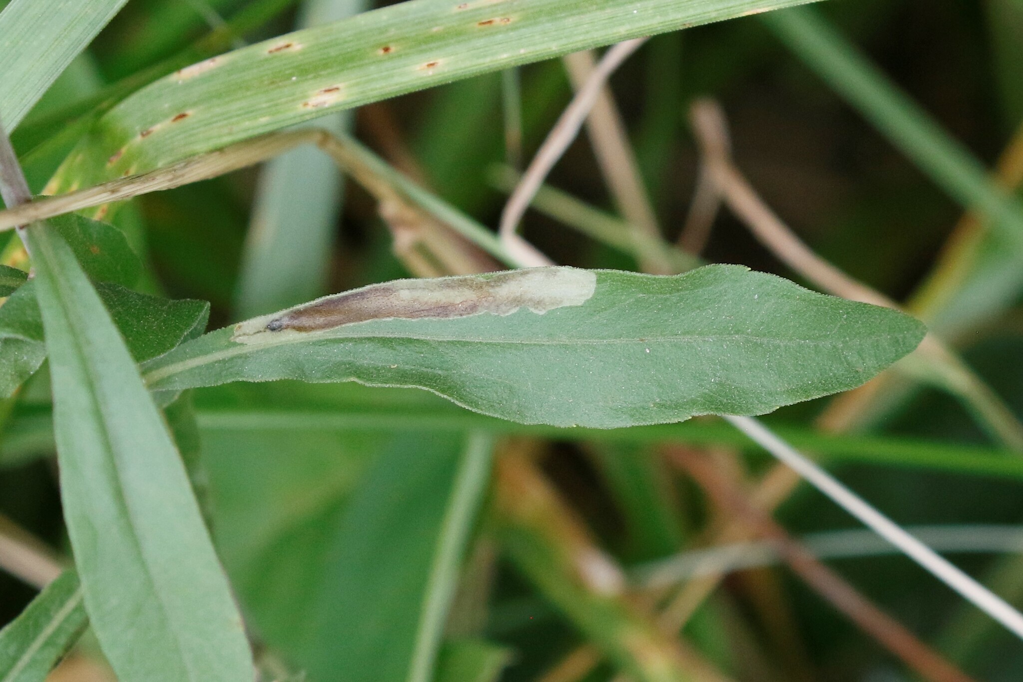 A Calycomyza solidaginis mine in Washington Co., Maryland (6/22/2019). Determined by Charlet Eiseman/BugGuide.