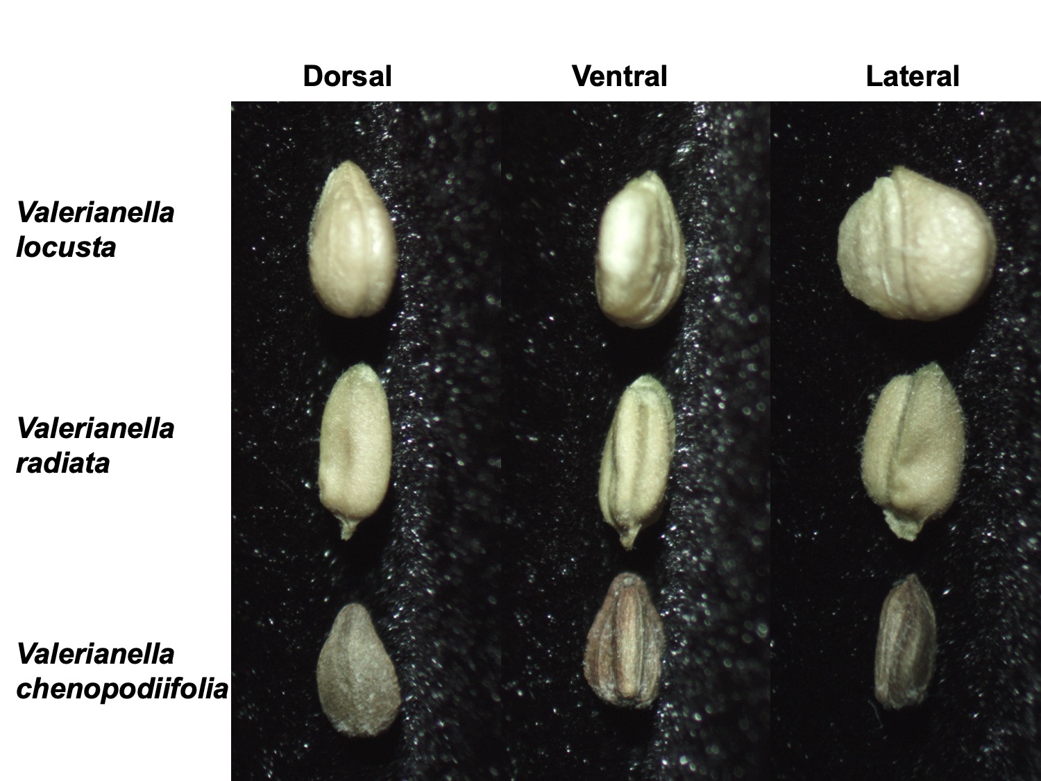 A comparison of the fruits of three Valerianella species found in Maryland.