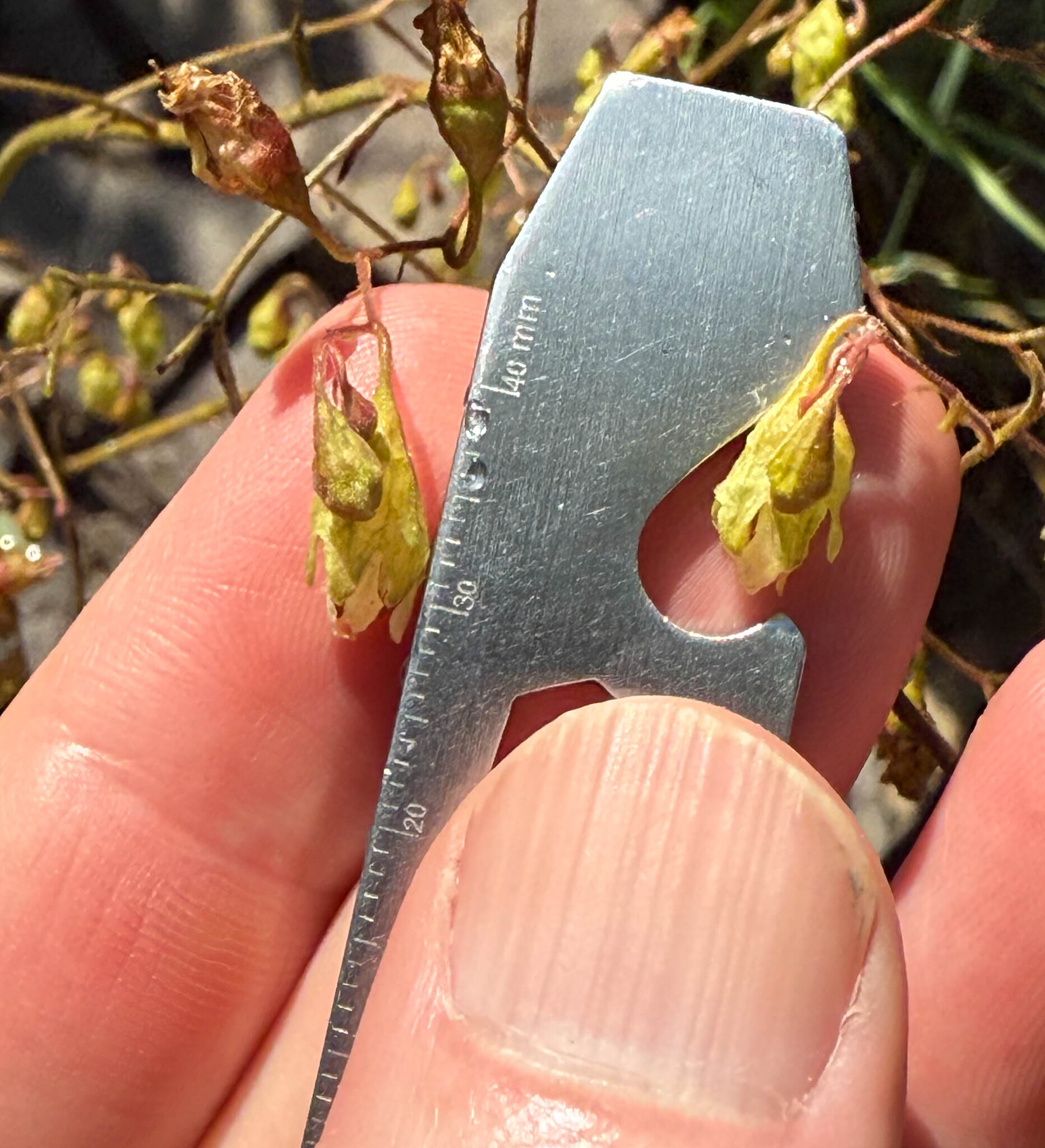 To identify this species flowers are needed. It has relatively large, campanulate flowers (calyx 5.5-13 mm). It is most similar to Heuchera pubescens. Heuchera pubescens has green (or purple-green) petals while Heuchera alba has white petals.