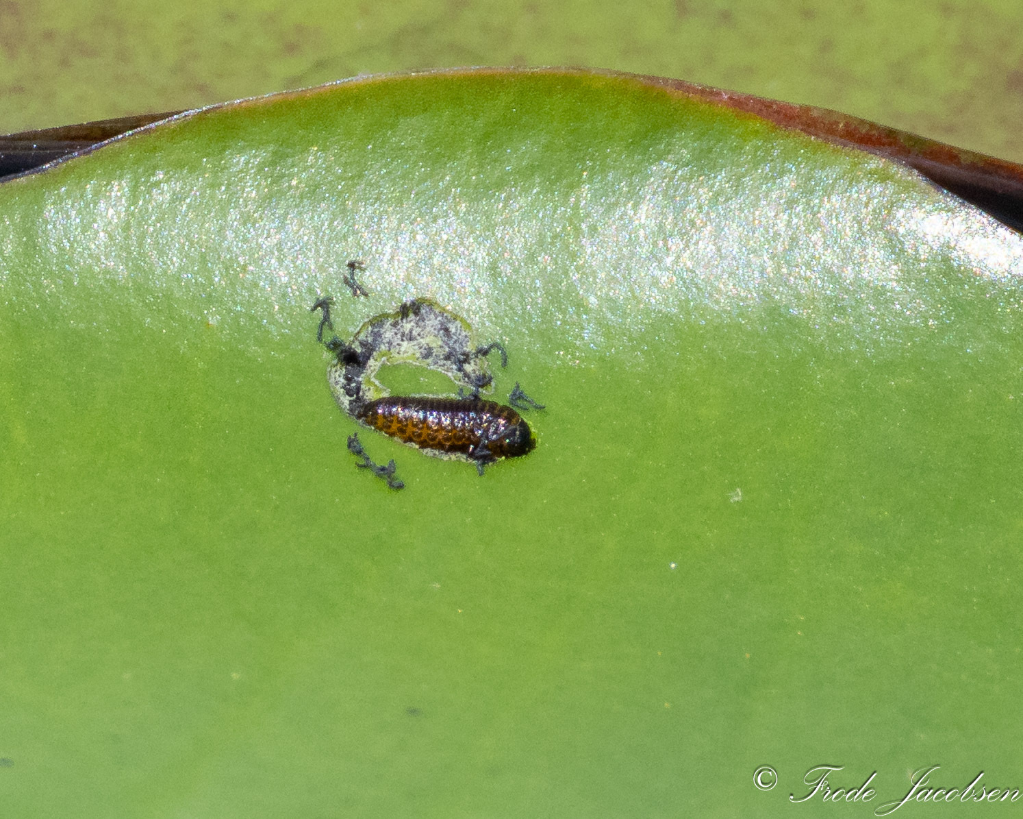 Water-lily Beetle larva in Garrett Co., Maryland (6/21/2025). (c) Frode Jacobsen, some rights reserved (CC BY-NC).