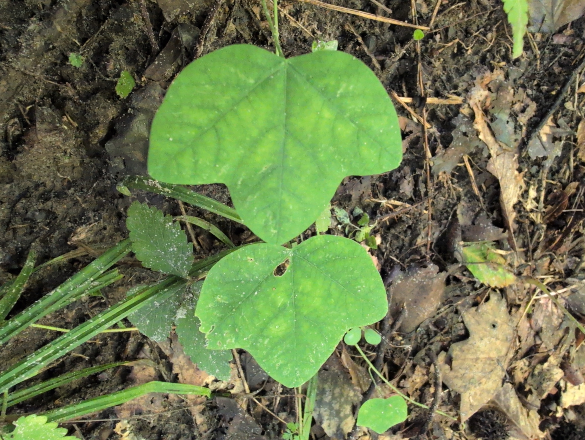 Passiflora lutea, commonly known as yellow passionflower,[1] is a flowering perennial vine in the family Passifloraceae, native to the central and eastern United States. The vine has three-lobed leaves and small, yellowish-green, fringed flowers that appear in the summer, followed by green fruit that turn almost black at maturity. It grows in moist to wet habitats.