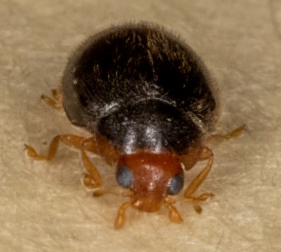 [edit]It is brown and oval-shaped, with a reddish tinge at the back portion of its elytra, and about 1.5 to 2 mm. It is covered in gold-colored setae, giving it a slightly hairy appearance.
