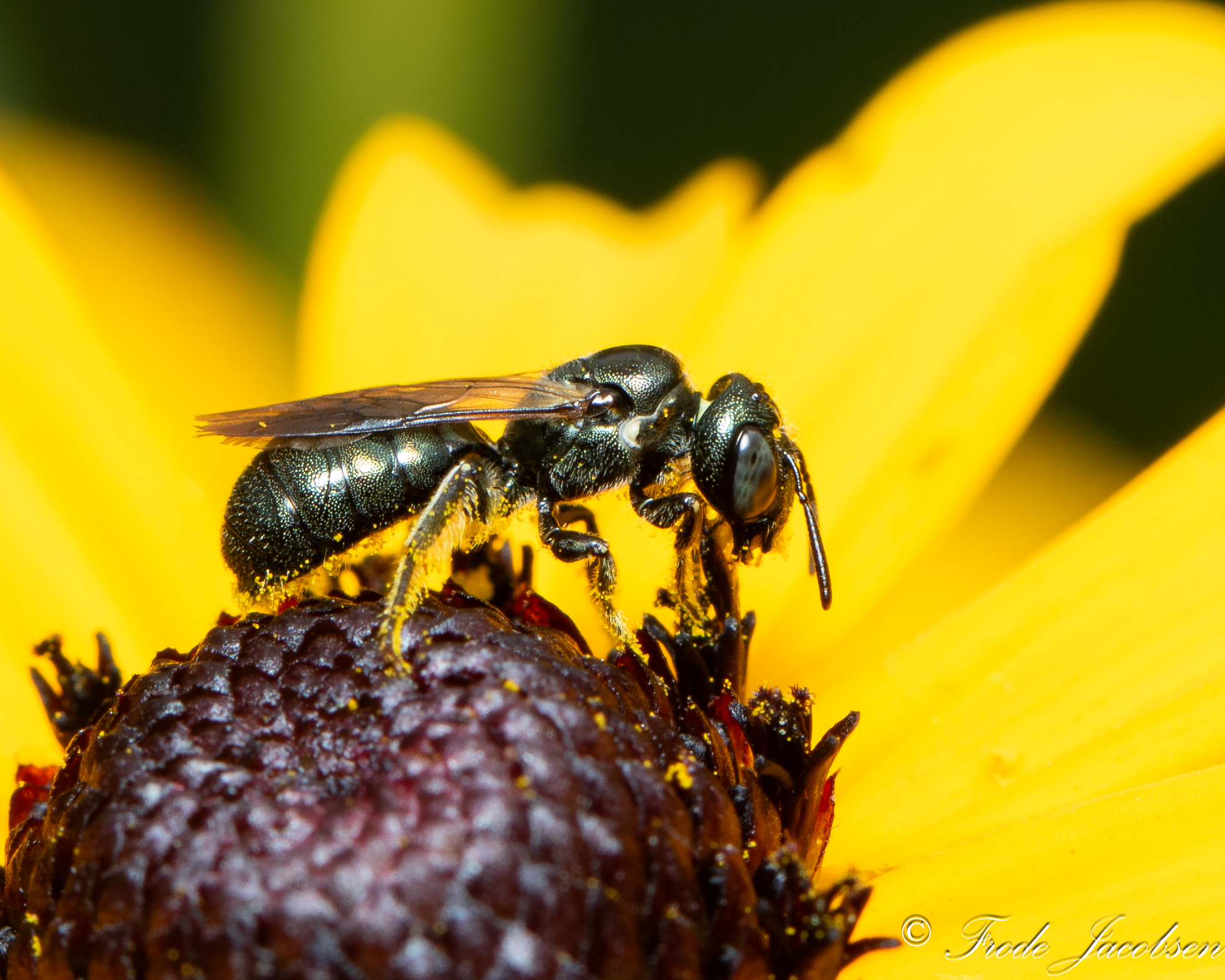 Ceratina calcarata, the spurred ceratina, is a species of small carpenter bee in the family Apidae.[2][3][4][5] It is found in eastern North America.[2] This species ranges from Georgia, USA north to Ontario, Canada and east to Nova Scotia, Canada.[6] This bee is a common generalist, native pollinator,[7] it pollinates plants like watermelon and cucumber very effectively.[8] C. calcarata adds to the productivity of a wide range of ecological and agricultural systems due to its wide range and abundance.[7] This small bee is becoming a model organism in the scientific research of social evolution.[7] C. calcarata is the first subsocial bee species to have its genome published, allowing researchers to investigate the evolutionary origins of social behaviour.[9]