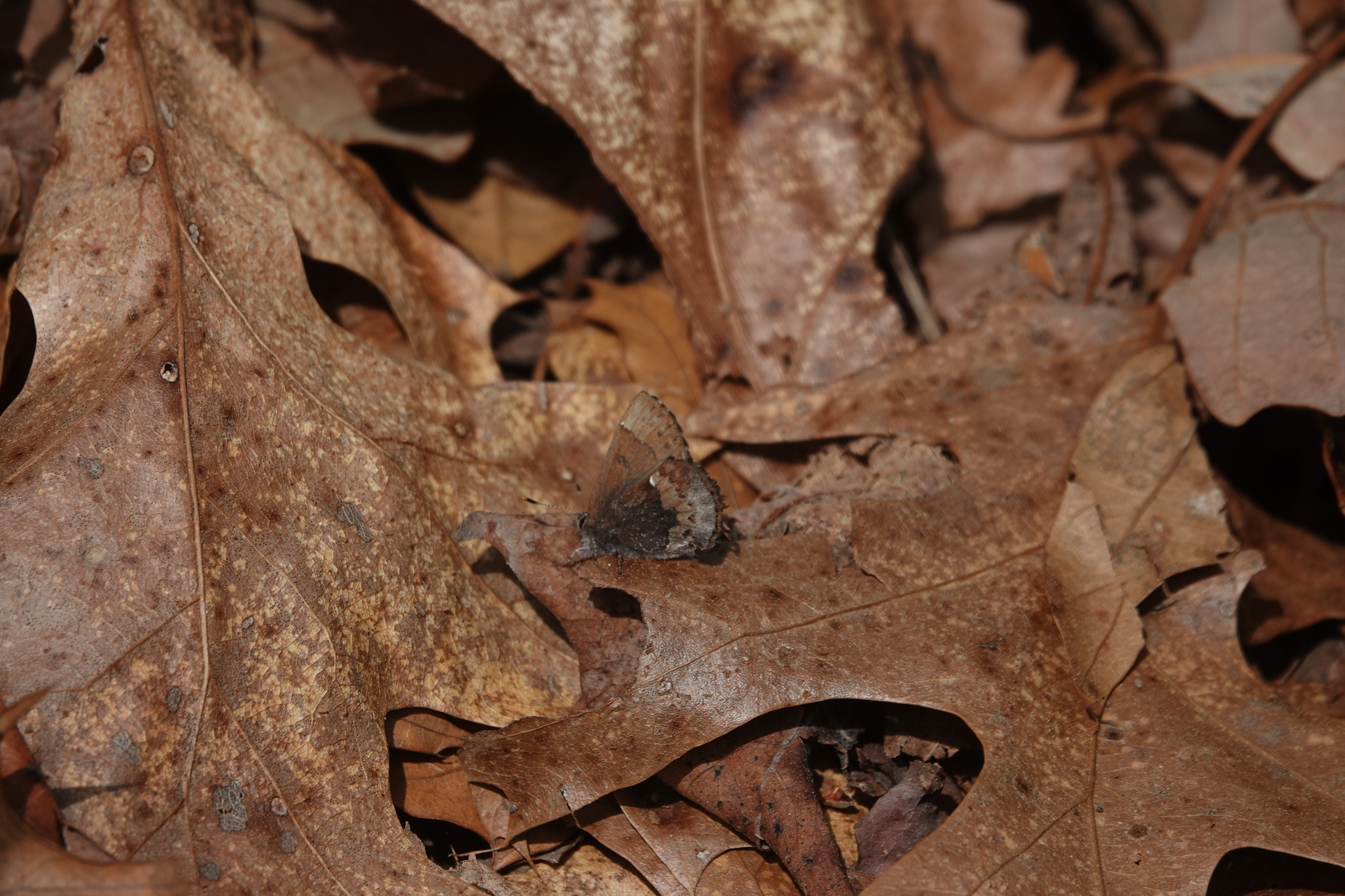 The frosted elfin is slightly larger, males have a stigma, the underside of the hindwing has more frosting, and there is usually a dark spot near the hindwing outer margin.[4]