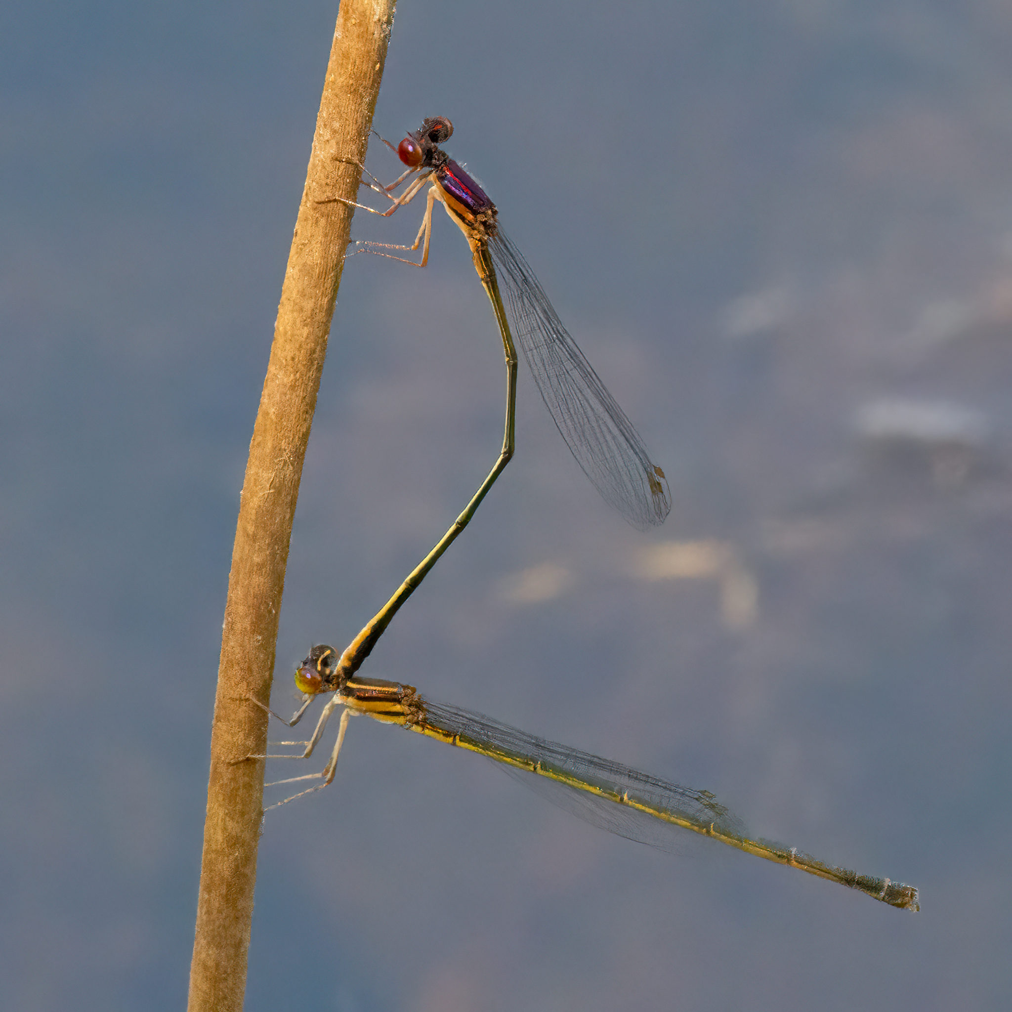 Burgundy Bluet (Enallagma dubium) is a dark bluet of the southeast, near the northern edge of its range in Maryland. It generally inhabits sandy ponds with dense vegetation, or sometimes slow streams or edges of swamps (Lam, 2004). This species has been confirmed from three counties on the Eastern Shore of Maryland (Richard Orr's Dragonflies and Damselflies of Maryland and the District of Columbia). A Charles County record was added in July 2024. It is considered S1 (highly state rare).