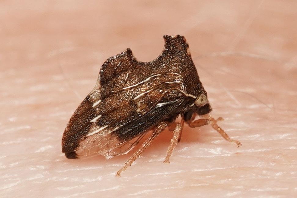 Entylia carinata, commonly known as the keeled treehopper, is a species of treehopper in the family Membracidae. They can be found in Brazil, Panama, Mexico, the United States, and Canada.[1][2][3][4] Keeled treehoppers are often attended by ants which feed on the honeydew they excrete. In return, the ants offer protection from predators.[5] Keeled treehoppers typically feed on plants in the aster family and they are not known to transmit plant diseases and are not considered significant plant pests.[5]