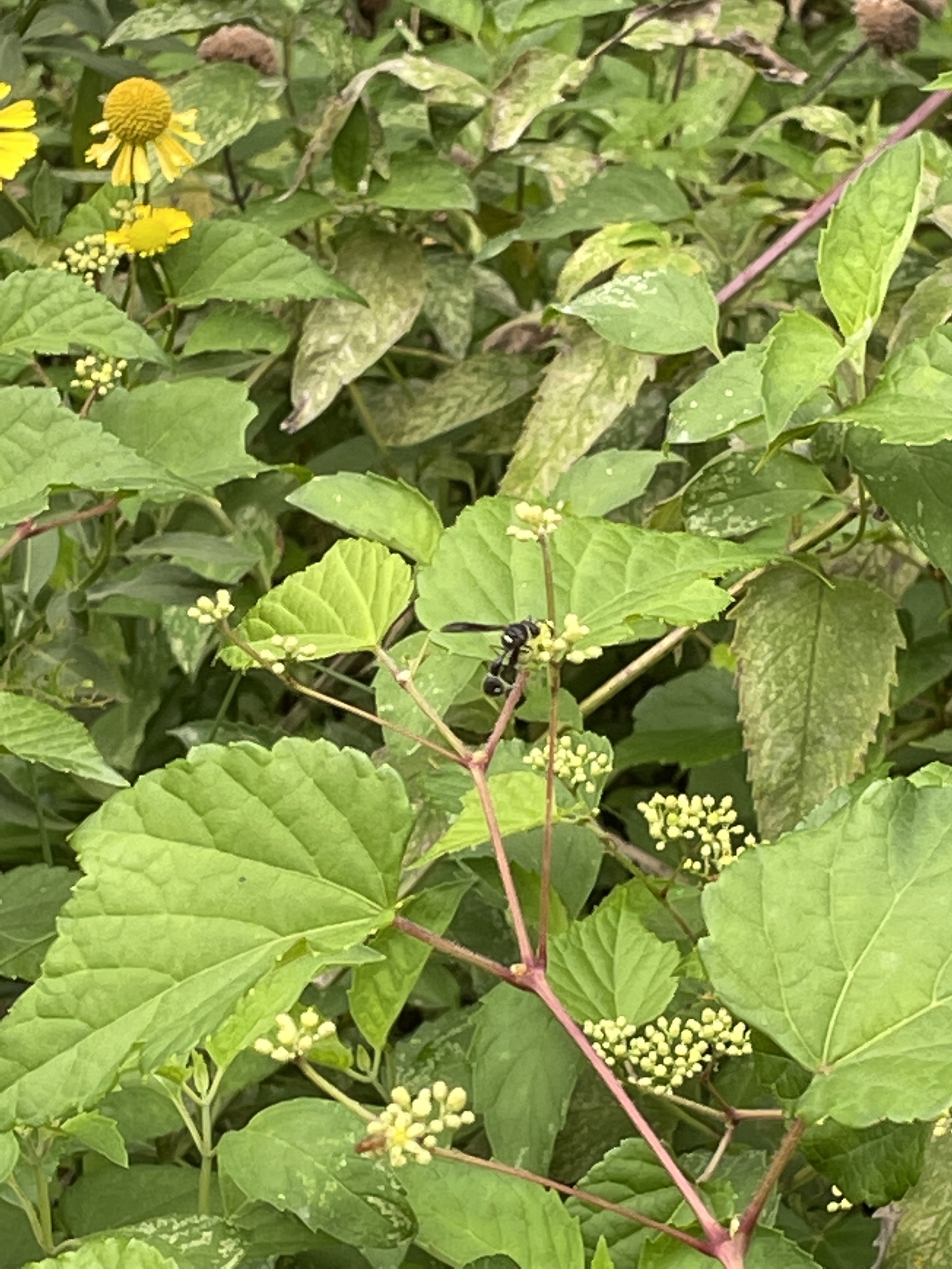 | Eumenes fraternus and mosquitoes collecting nectar on Solidago | |