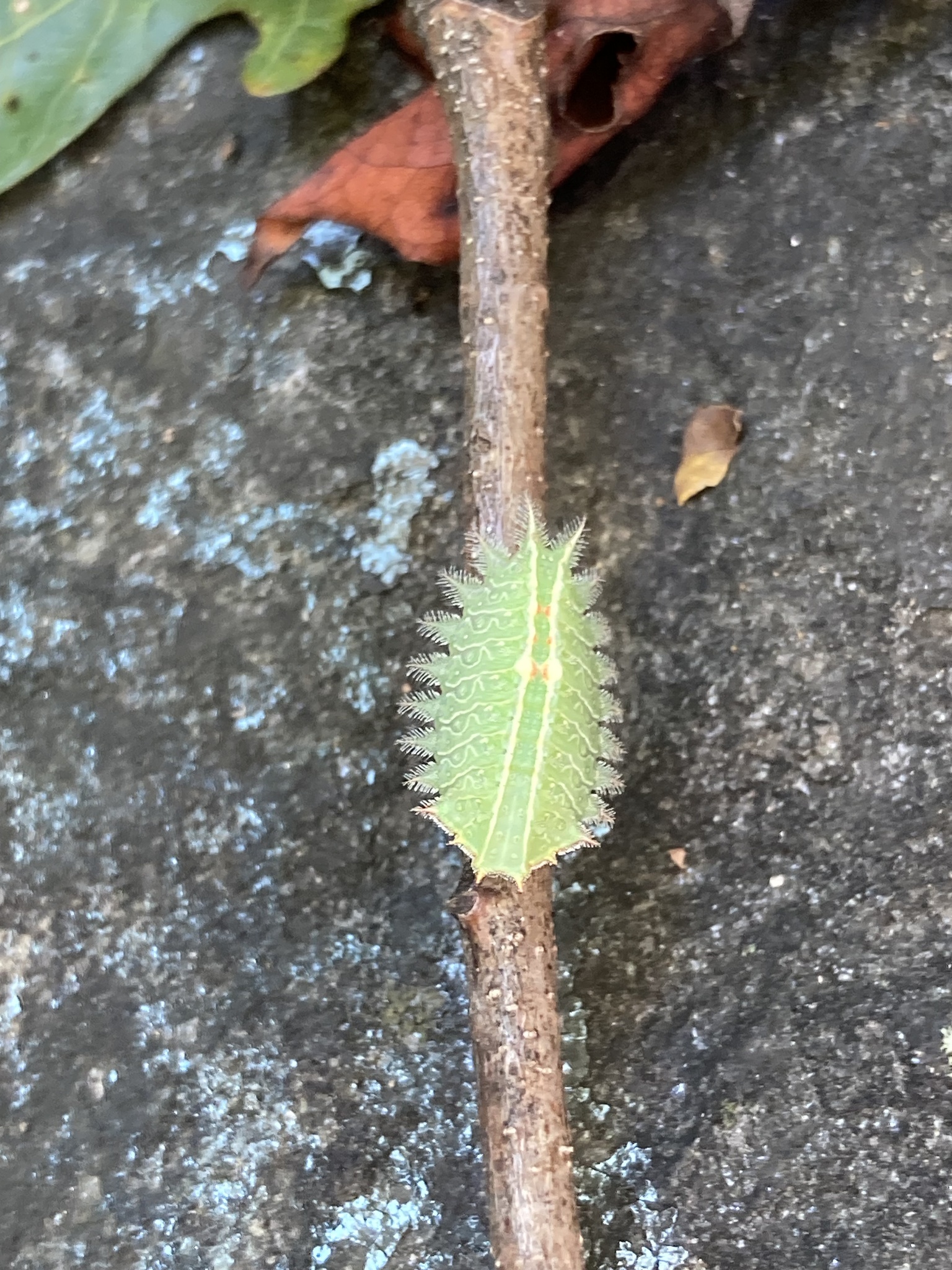A Crowned Slug Moth in Harford Co., Maryland (10/2/2017).