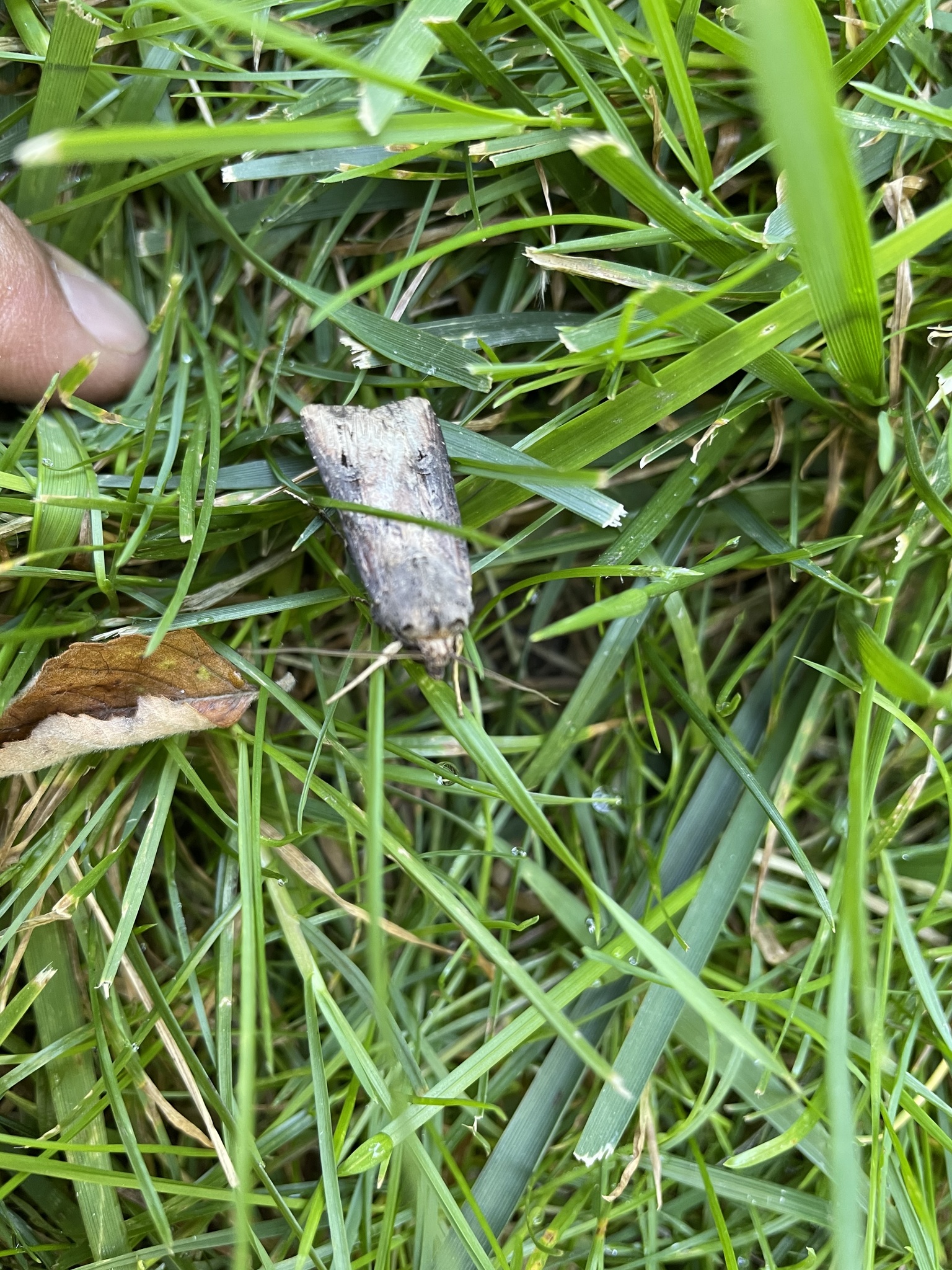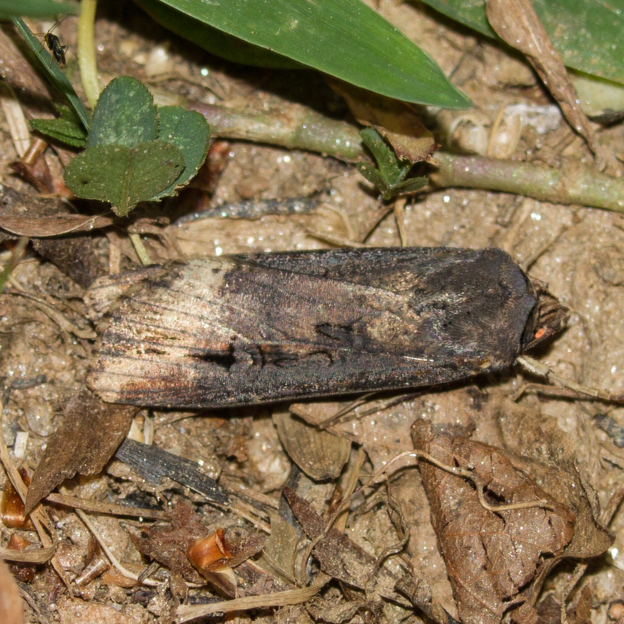 Agrotis ipsilon, the dark sword-grass, ipsilon dart, black cutworm, greasy cutworm or floodplain cutworm, is a small noctuid moth found worldwide.[2] The moth gets its scientific name from black markings on its forewings shaped like the letter "Y" or the Greek letter upsilon.[3] The larvae are known as "cutworms" because they cut plants and other crops.[4] The larvae are serious agricultural pests and feed on nearly all varieties of vegetables and many important grains.[5][6]