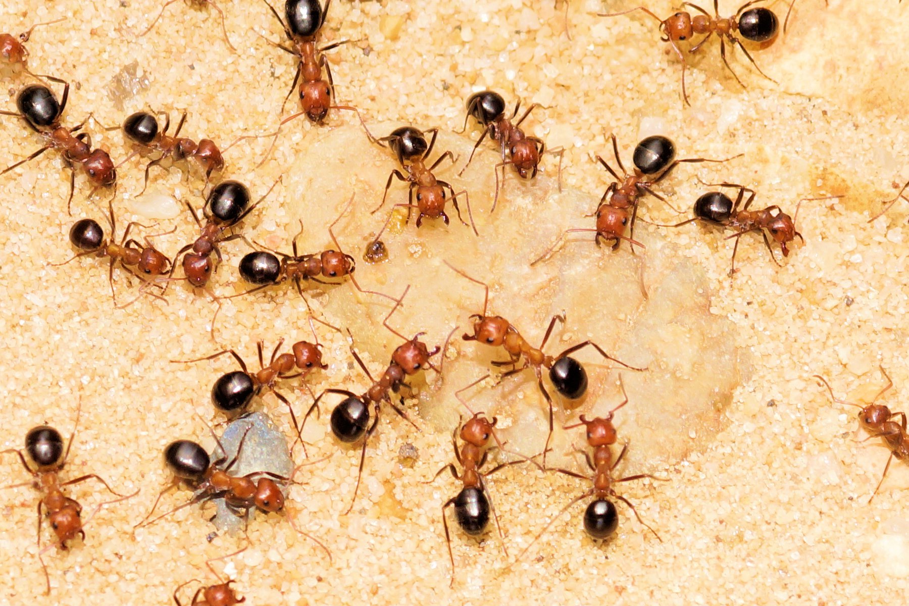 The Allegheny mound ant (Formica exsectoides) is a species of ant native to the Atlantic area of North America. Its range extends from Nova Scotia to parts of Georgia. Like other field ants, the Allegheny mound ant builds large mounds, however this species tends to build some of the largest. To keep their mounds exposed to the sun, the ants kill vegetation within 40 to 50 feet (12 to 15 m). They do this by injecting formic acid into plant stems, killing small trees and shrubs. Members of the formic acid producing genus Formica are known for their citrus taste.[2] The Allegheny mound ant's appearance is very striking: both its head and thorax are red-orange; its gaster is black-brown. The ant's colonies are complex. Several different mounds may be interconnected. The tunnels may extend 3 feet (0.91 m) into the ground and 4 feet (1.2 m) upwards in the mound. The mound serves as a solar incubator for the eggs and larvae. Unlike most other ants, Allegheny mound ants have multiple queens. Maturation from egg to adult takes 2.5–3 months. They hunt a wide assortment of arthropods as a protein source and collect aphid honeydew as a source of sugars.