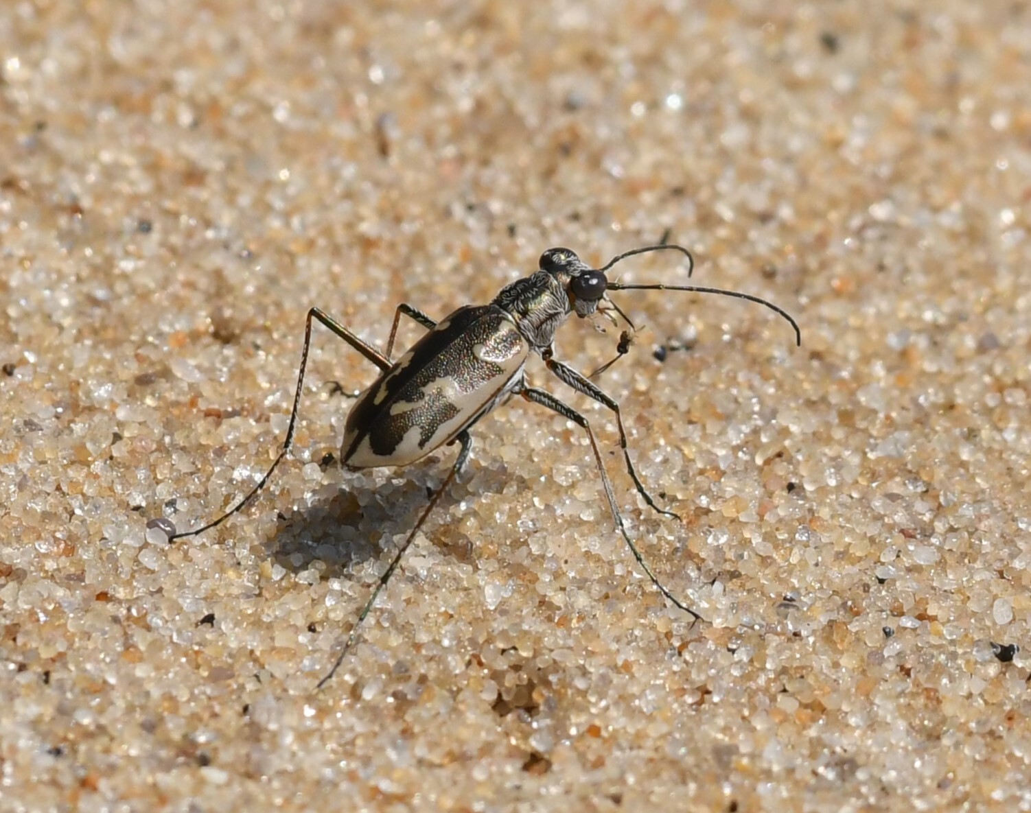 [edit]The Puritan tiger beetle preys on amphipods, beach arthropods, flies, lice, fleas, ants, and small invertebrates.[8]