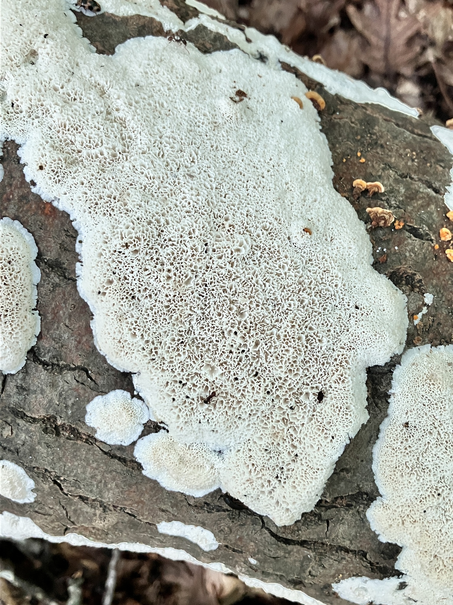 Schizopora paradoxa found in a mixed oak, beech, and pine woods in Somerset Co., Maryland (11/3/2014). Verified by Dr. H. Burdsall.