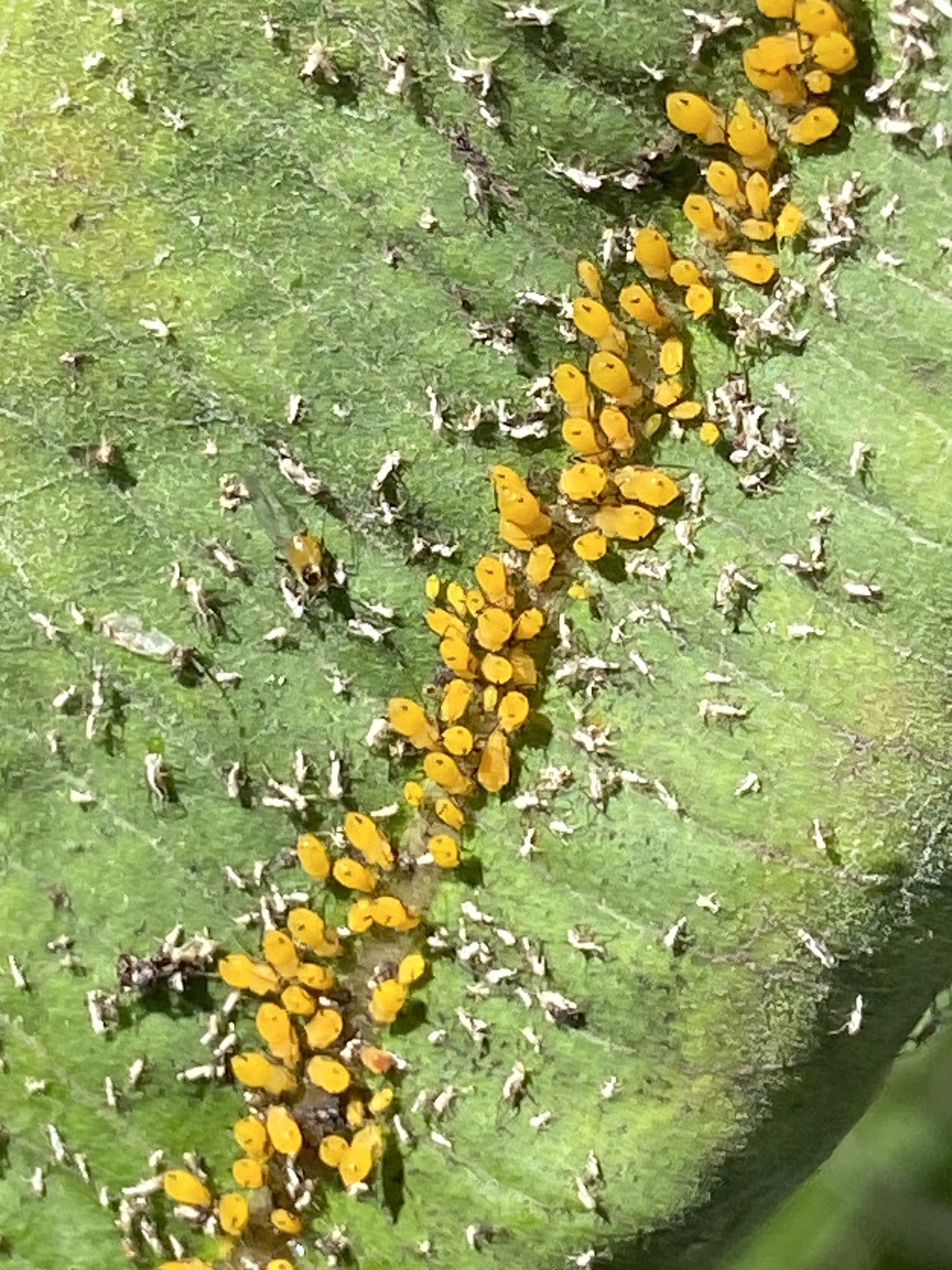 Colony on Asclepias syriaca inflorescence