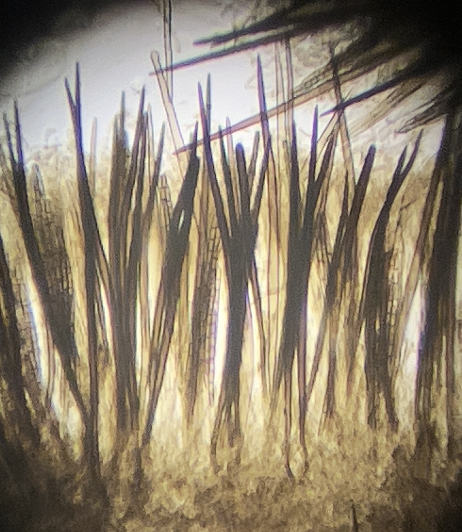[edit]Ascocarps are club-shaped, up to 35 mm (1.5 in) tall, black to dark brown, with a swollen, spore-bearing head, up to half the ascocarp height, and a finely hirsute, cylindrical stipe (stem). Microscopically, dark, thick-walled, acute setae are present. The asci are 8-spored, the ascospores 90–100 × 4.5–5.5 μm, becoming 7-septate at maturity.[2] North temperate collections differ in being larger, up to 100 mm (4 in) tall, and in having shorter ascospores, 75–85 × 4.5–5.5 μm.[2]