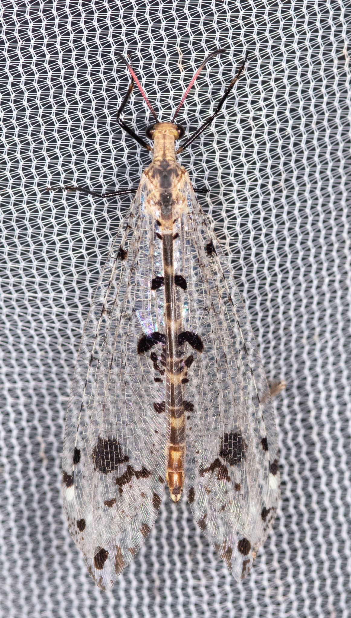 A Spotted-winged Antlion in Carroll Co., Maryland (9/16/2024). Verified by Ken Wolgemuth/BugGuide.