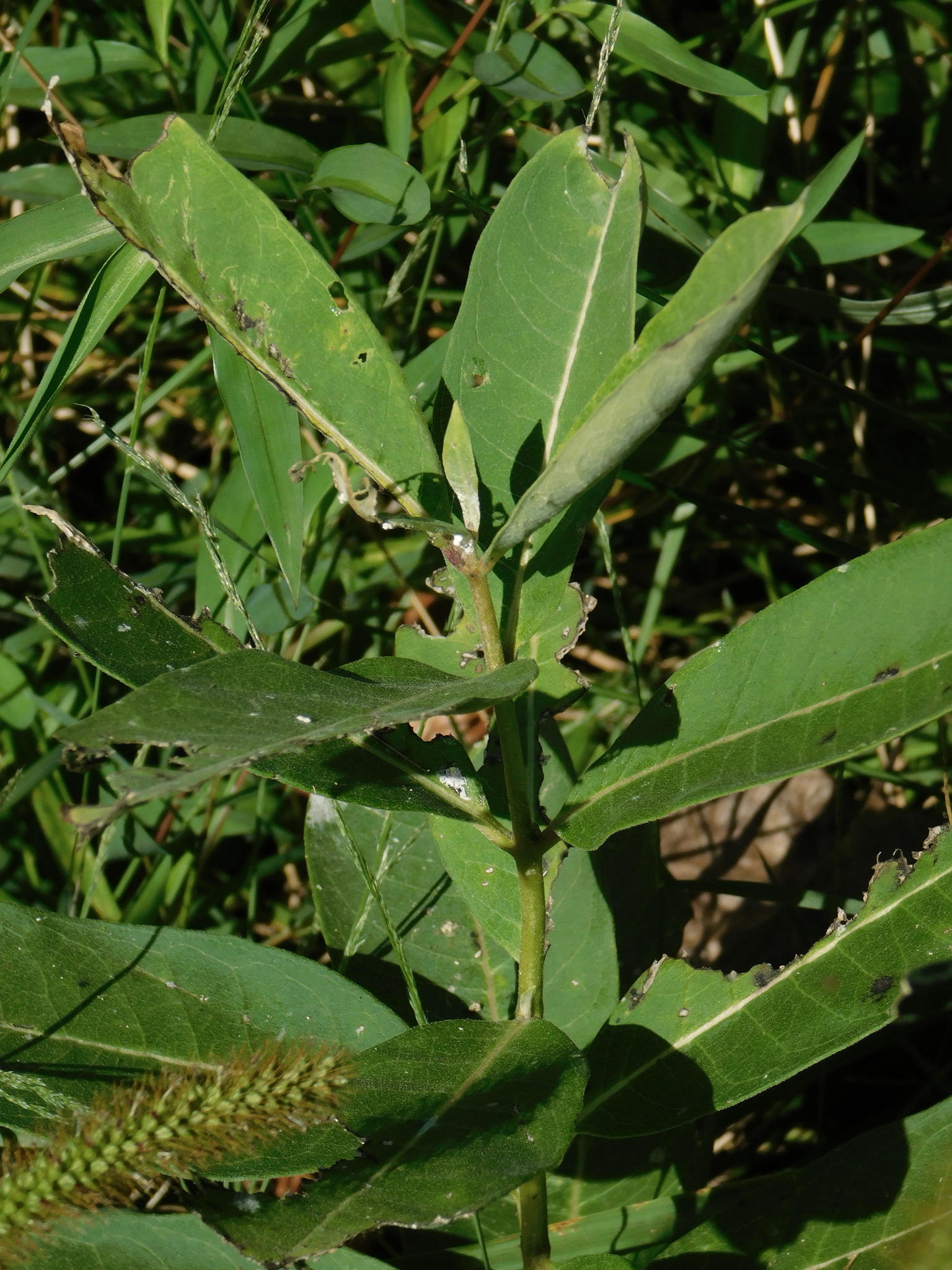 Other insects that feed on the plant include the red milkweed beetle (Tetraopes tetraophthalmus), the milkweed tussock caterpillar (Euchaetes egle), the large milkweed bug (Oncopeltus fasciatus), and the small milkweed bug (Lygaeus kalmii).[3][13] The nonnative Aphis nerii (oleander aphid) can become abundant on milkweed shoots.[14]