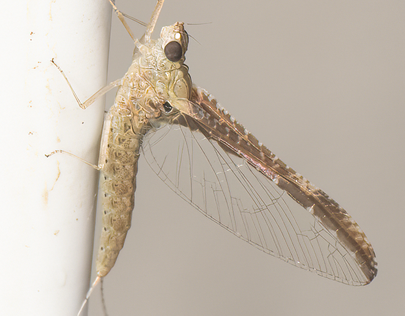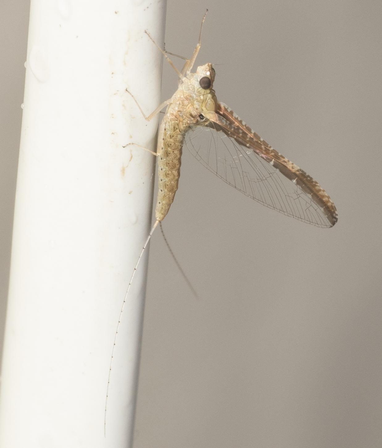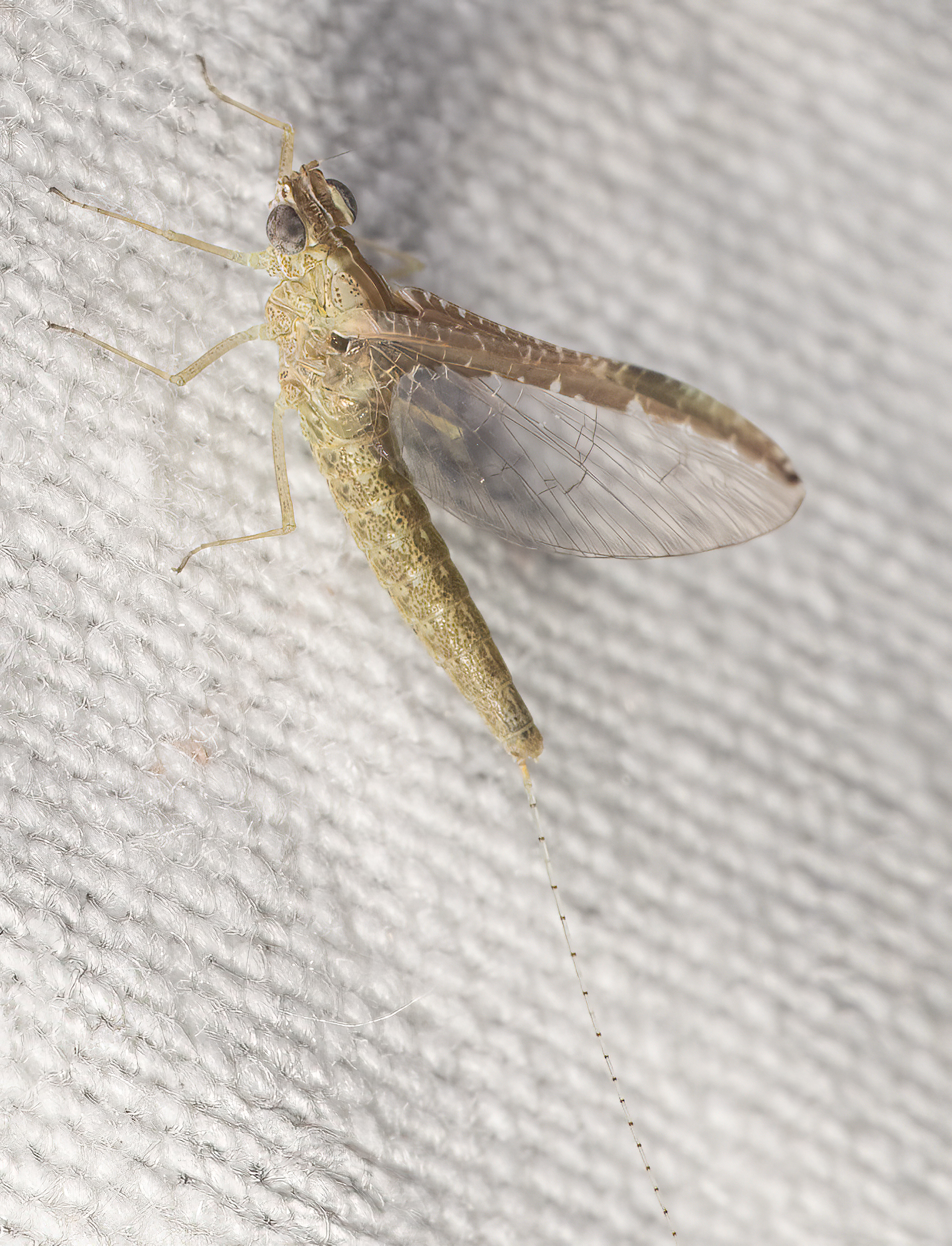 A female subimago Callibaetis floridanus in Cecil Co., Maryland (9/26/2022). Verified by Roger Rohrbeck/BugGuide.