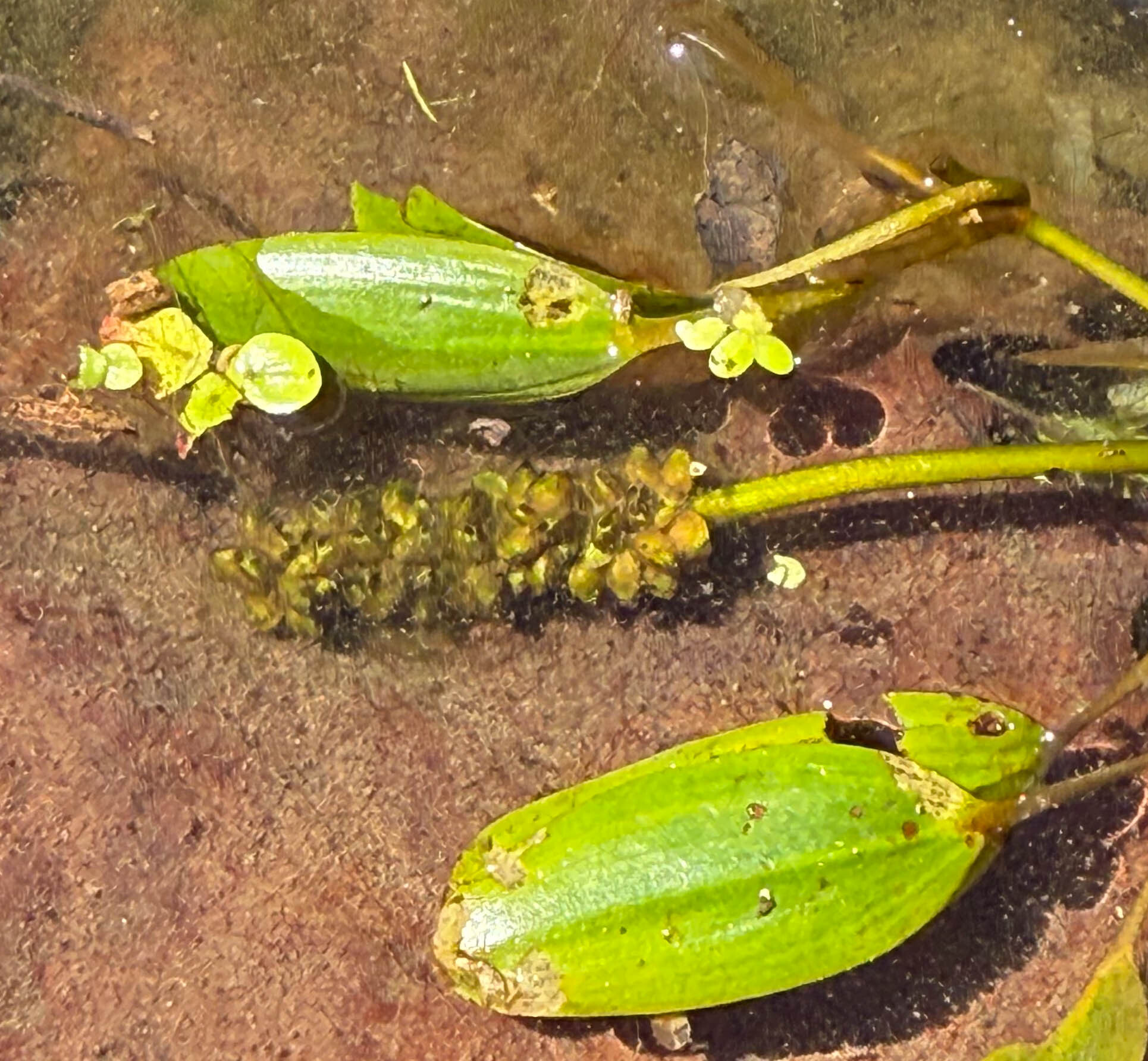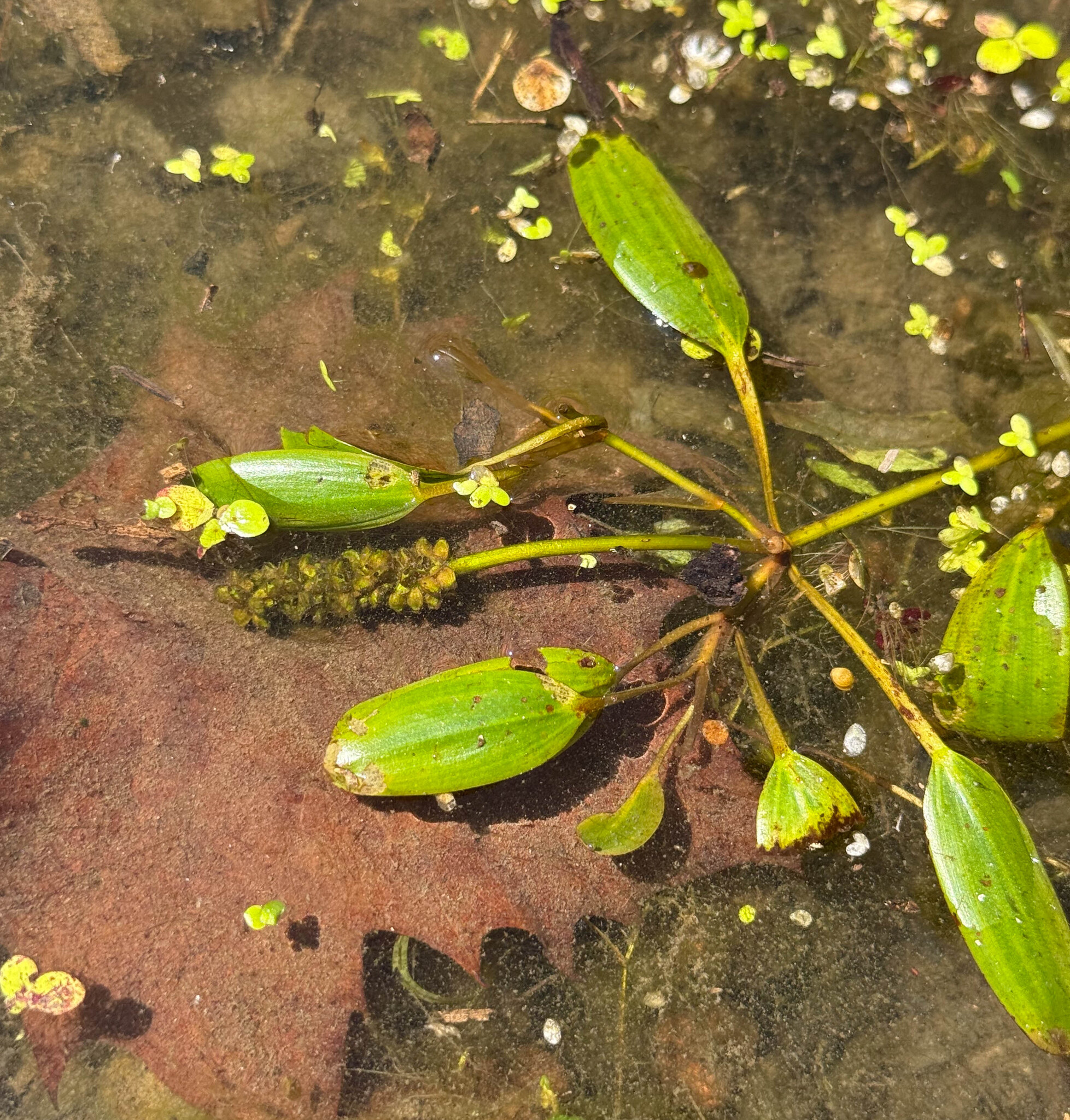 - Floating leaves, similar to the floating leaves of other Potamogeton, which are petiolate and opaque, and up to 8 centimeters long and 3 wide