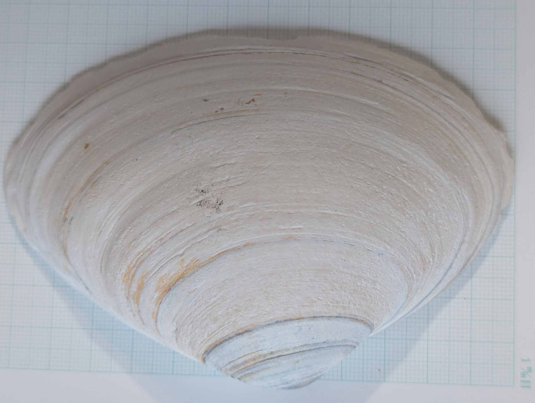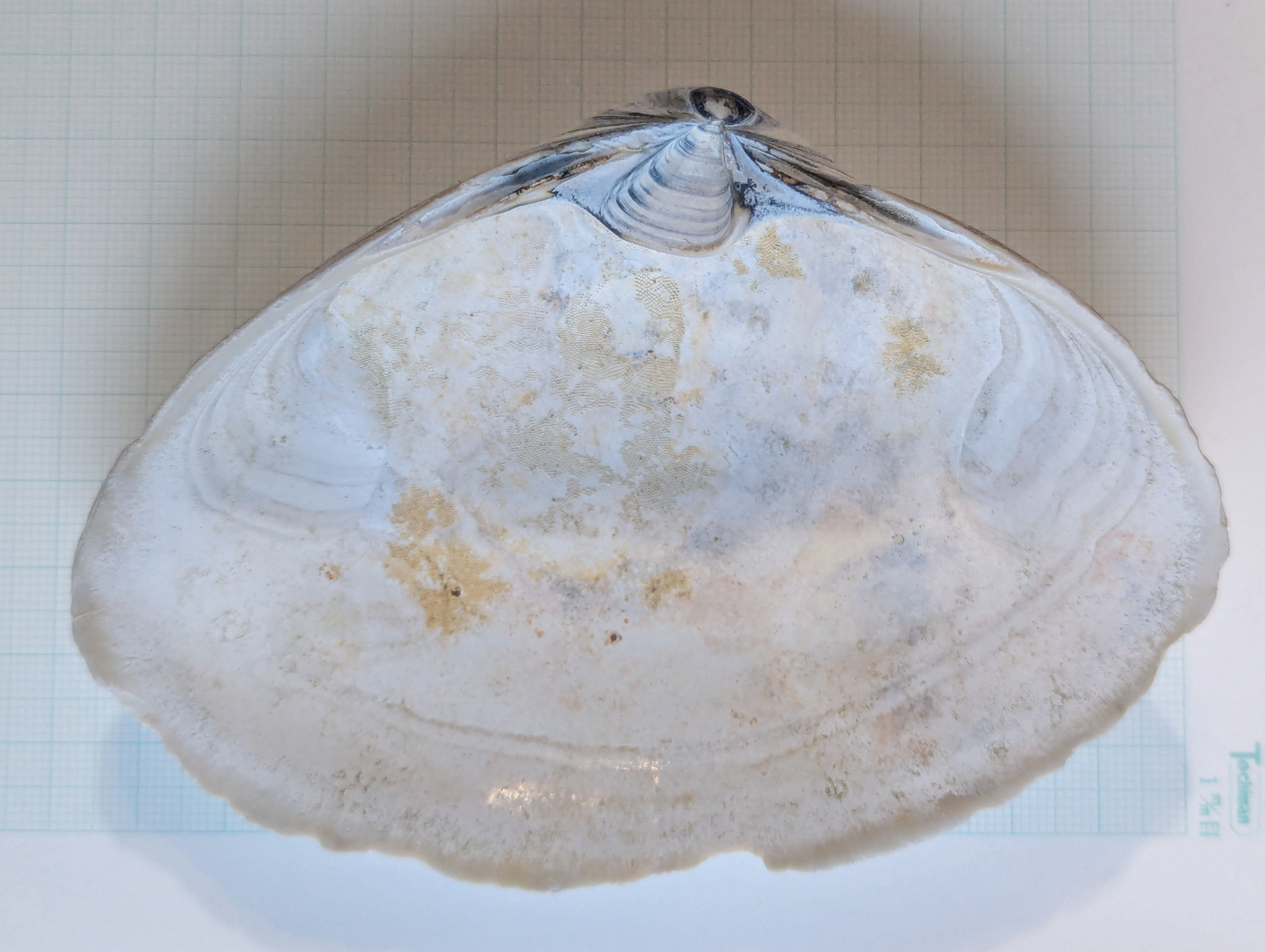 | A 15 cm adult shell of Spisula solidissima from Long Beach, Long Island. Right valve at the top, left valve at the bottom. | |