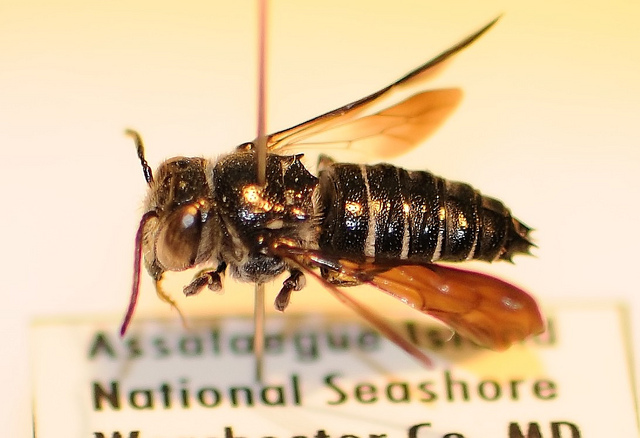 Coelioxys dolichos collected on Assateague Island National Seashore, Maryland (2007). It is a nest parasite that targets Megachile xylocopoides, a leaf-cutting bee species. Richard Orr collected this first specimen north of North Carolina.