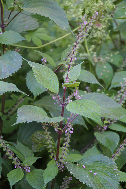 Perilla frutescens, known as deulkkae (Korean: 들깨) or Korean perilla in Korea, as egoma (Japanese: エゴマ) in Japan, and as zisu (Chinese: 紫苏) in China, is a species of Perilla in the mint family Lamiaceae. It is an annual plant native to Southeast Asia and Indian highlands, and is traditionally grown in the Korean peninsula, southern China, Japan and India as a crop. A variety of this plant, P. frutescens var. crispa known as "shiso", is widely grown in Japan.[3]