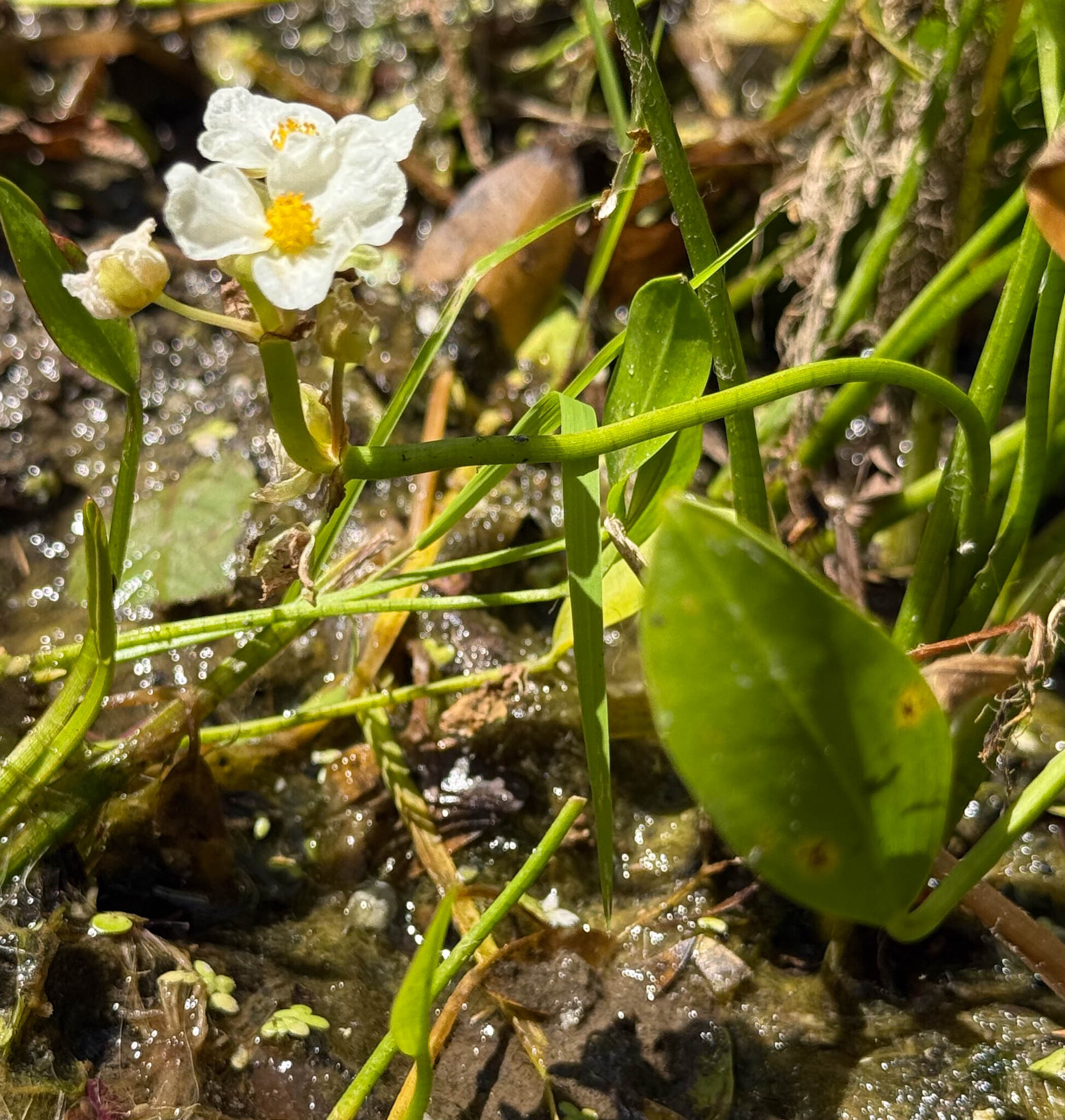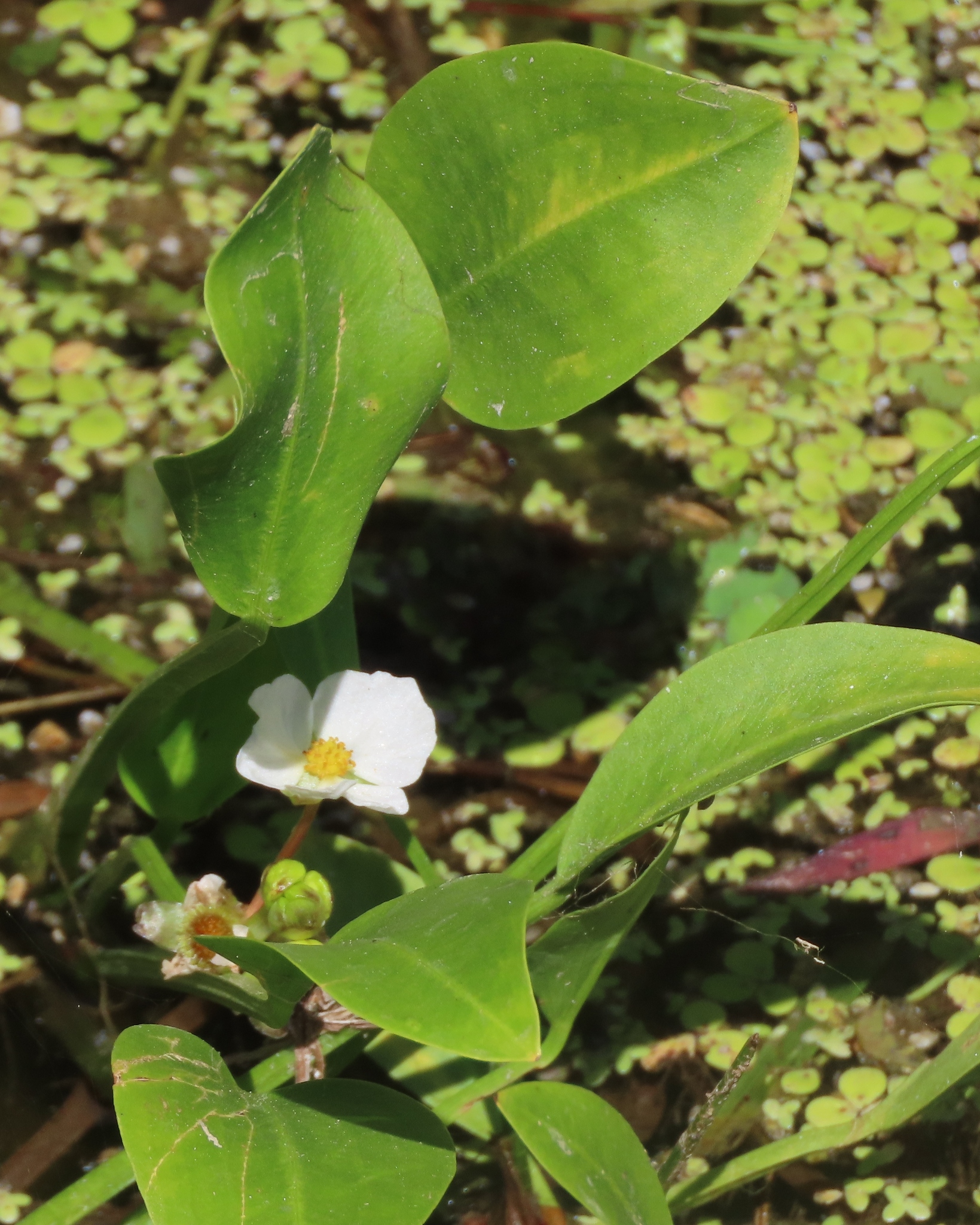 Sagittaria rigida, the sessilefruit arrowhead[2] or Canadian arrowhead,[3] is an aquatic plant species. It has narrow oval leaves rather than the iconic arrowhead shaped leaves of species like the Sagittaria latifolia. it has sessile female flowers, from whence its name comes. Its flowers are very similar to other plants in the Sagittaria family, with three white petals.