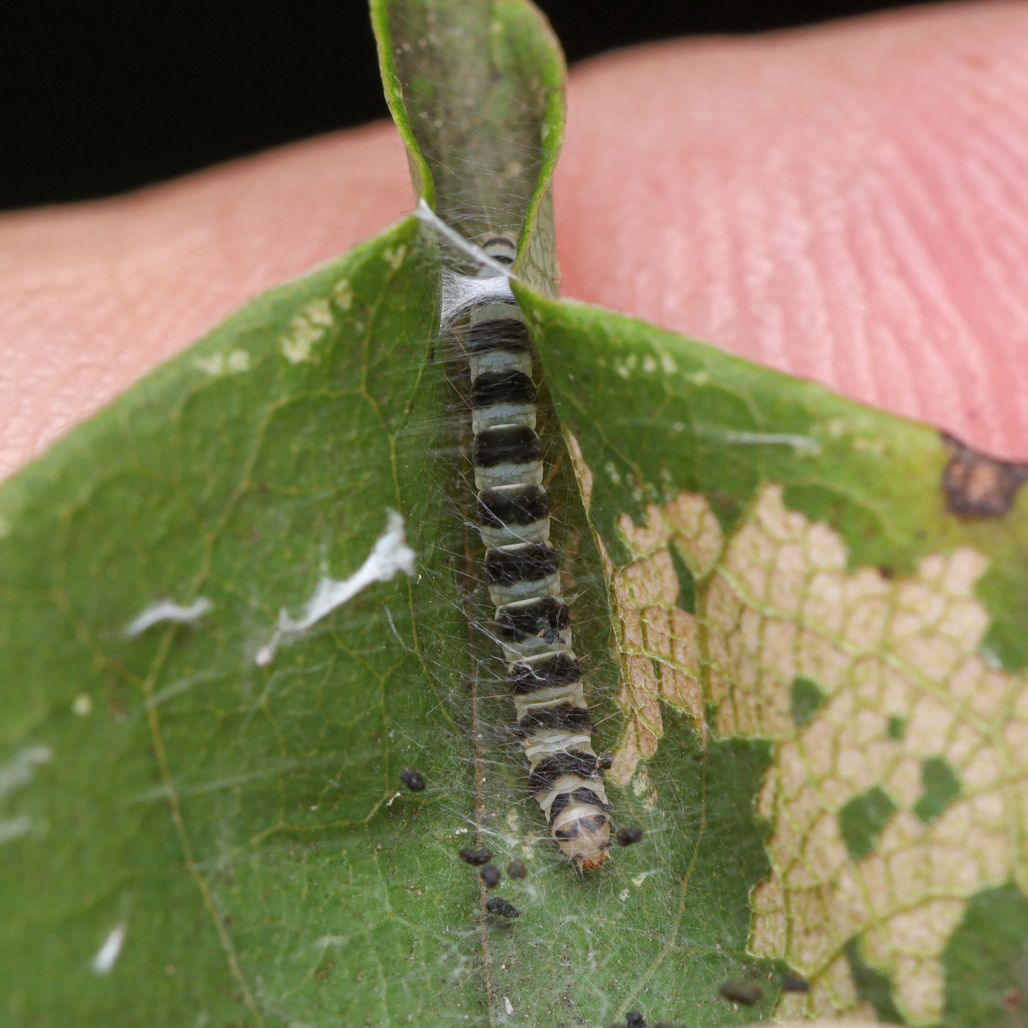 | Larva in leaf-fold on Cercis canadensis | |