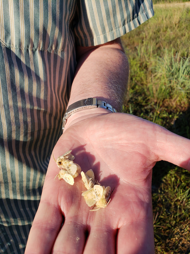 Black-waved Flannel Moths playing dead in Anne Arundel Co., Maryland (6/16/2018). (c) Bill Hubick, all rights reserved.