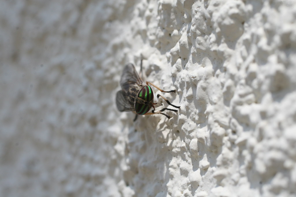 [edit]Tabanus lineola females have a pale median stripe on their abdomen and are known for biting. The male does not bite and lacks hair on eyes.