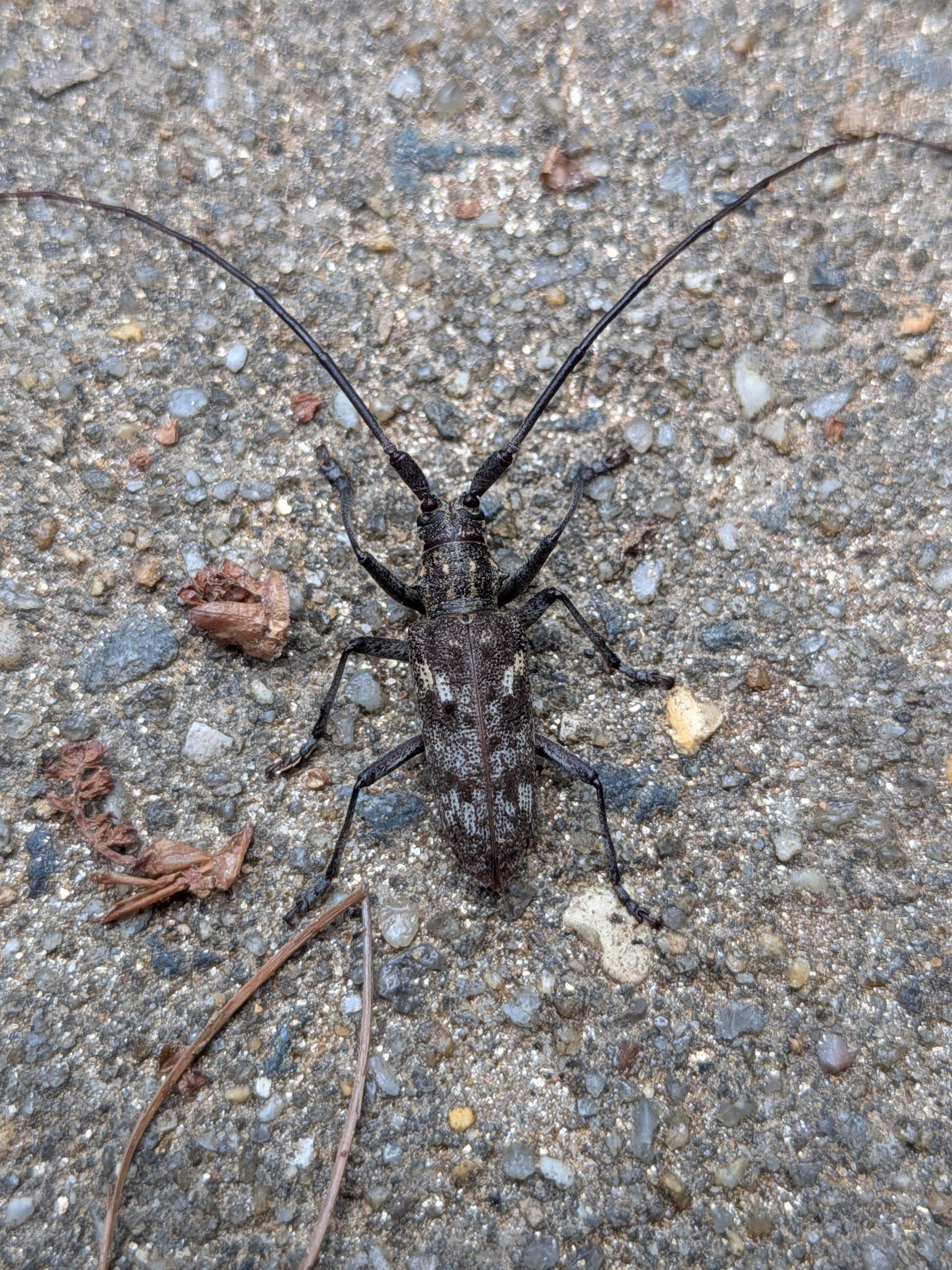 A Monochamus carolinensis in Washington Co., Maryland (9/27/2019). Determined by Robert Androw/BugGuide.