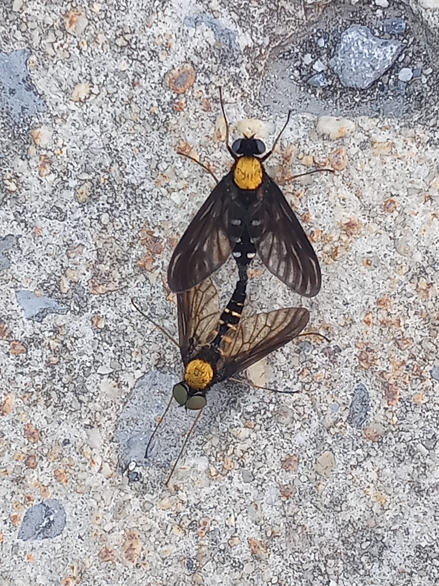 Golden-backed Snipe Flies mating in Howard Co., Maryland (6/2/2016).